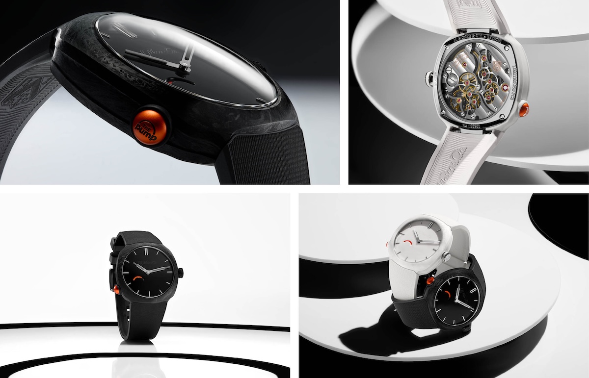 當 1980 年代末 Reebok Pump 球鞋以一種「優雅局外人」的姿態定義了世代文化,它便證明了性能與樂趣從非平行線,而是在指尖輕輕按壓的瞬間,賦予了物品活過來的靈魂。這種帶著幽默感的精緻格調,在 2026 年「鐘錶與奇蹟」錶展上,被 H. Moser & Cie. 亨利慕時巧妙地轉化為製錶語言。疾速者 Pump 腕錶的誕生,讓奢華不再只是正經八百的陳設,而是一場邀請佩戴者與機械深度連結的遊戲。品牌大膽地以經典橘色陽極處理鋁合金按鈕取代傳統錶冠,每一次按壓,都能親眼見證動力透過鏤空橋板傳遞至發條盒的精妙舞步,僅需一按,便能注入超過一小時的動能,甚至在滿鏈後仍能純粹為了樂趣而持續按壓,實踐了「行為本身即是意義」的品牌哲學。