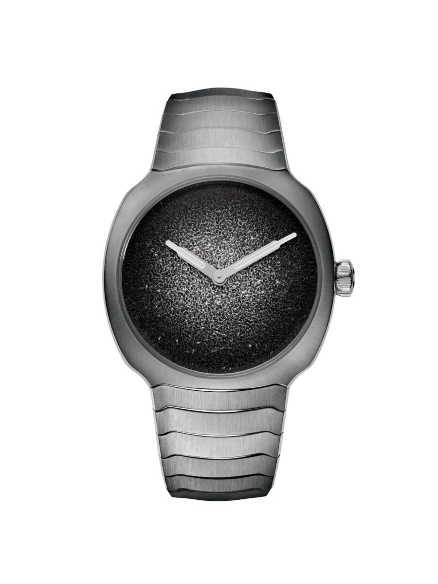 在這深邃無垠的背景上,不鏽鋼葉形指針與品牌標誌性的極簡布局,交織出一種冷靜而內斂的奢華張力。隱藏在精煉外表下的,是享譽錶壇的 HMC 800 手動上鏈自製機芯,它承襲了品牌最為人稱道的設計所有調校皆能透過一只錶冠在任何時刻自由前後調整,將極致複雜的機械邏輯化為無形且優雅的操作體驗。