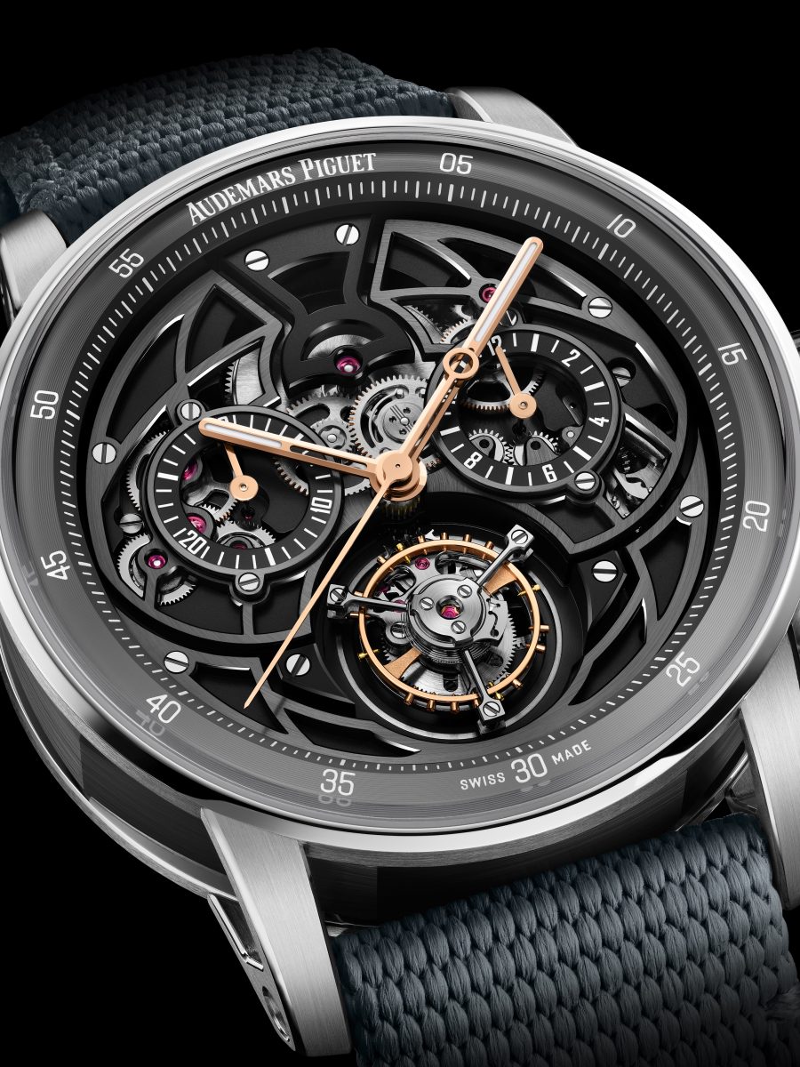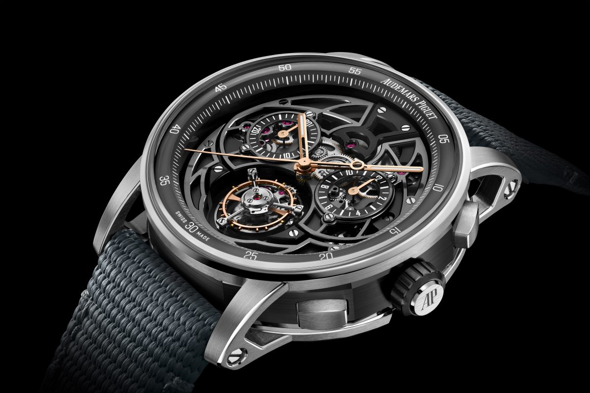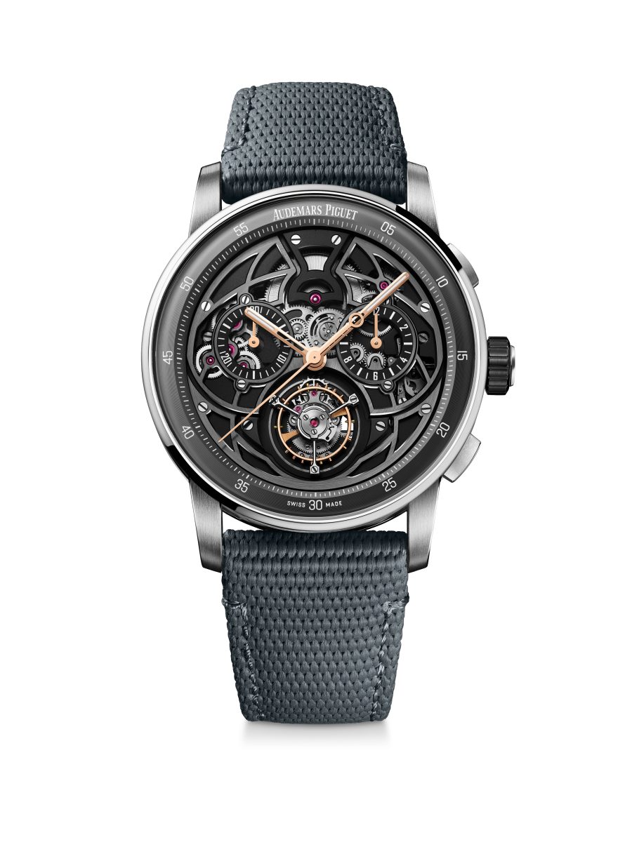 愛彼推出 CODE 11.59 系列灰⾊調⾃動上鍊⾶⾏陀⾶輪計時碼錶
