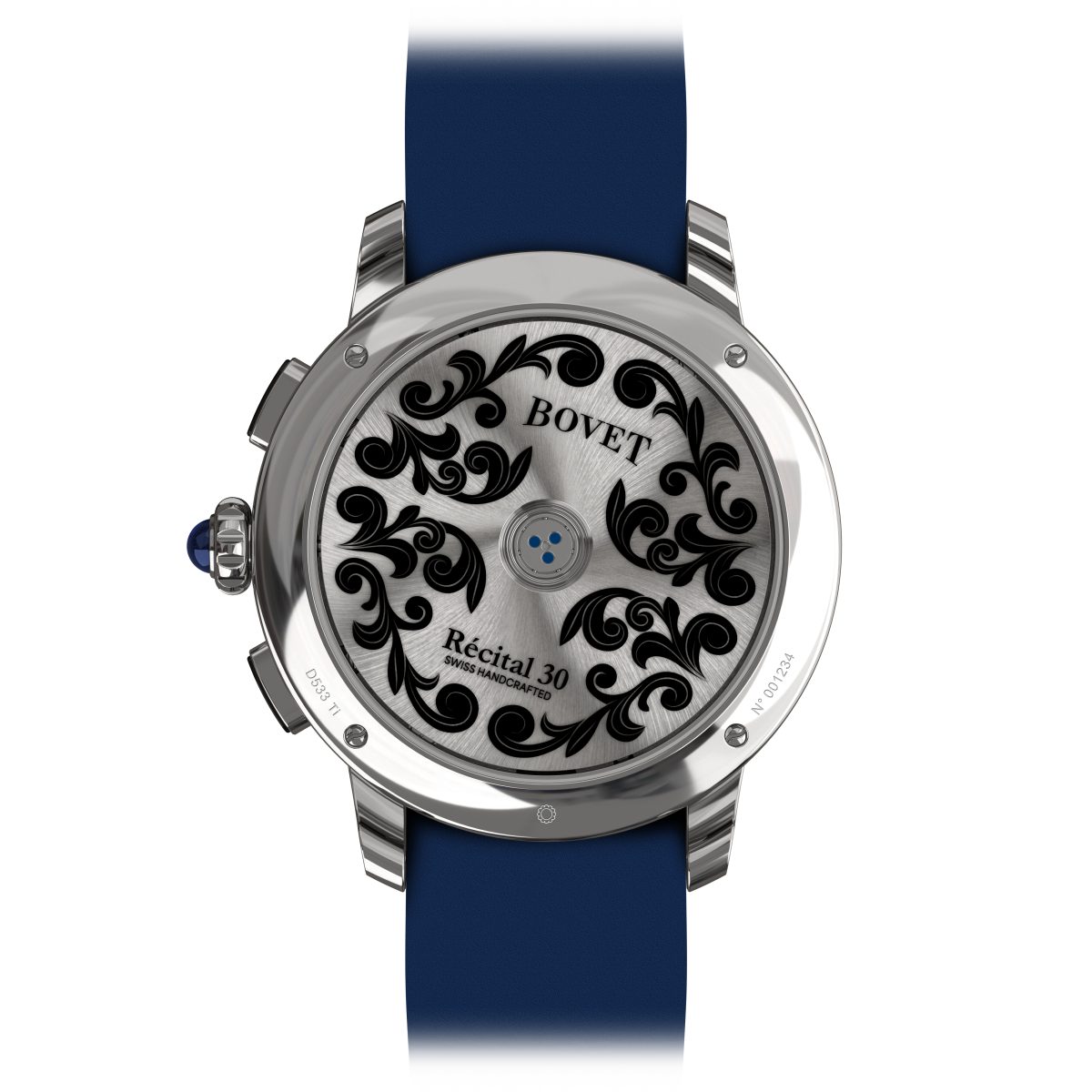 BOVET首次在位於Tramelan的製錶廠中自行製作時計表殼。所有鈦金屬材質的Récital 30錶殼將完全由自家製作,而18K紅金材質的Récital 30錶殼則將從2026年起在Tramelan製錶廠生產。兩款錶殼均搭配藍寶石水晶展示後蓋——這是BOVET於19世紀所首創的設計,旨在展示其精緻雕刻與華麗裝飾的機芯。