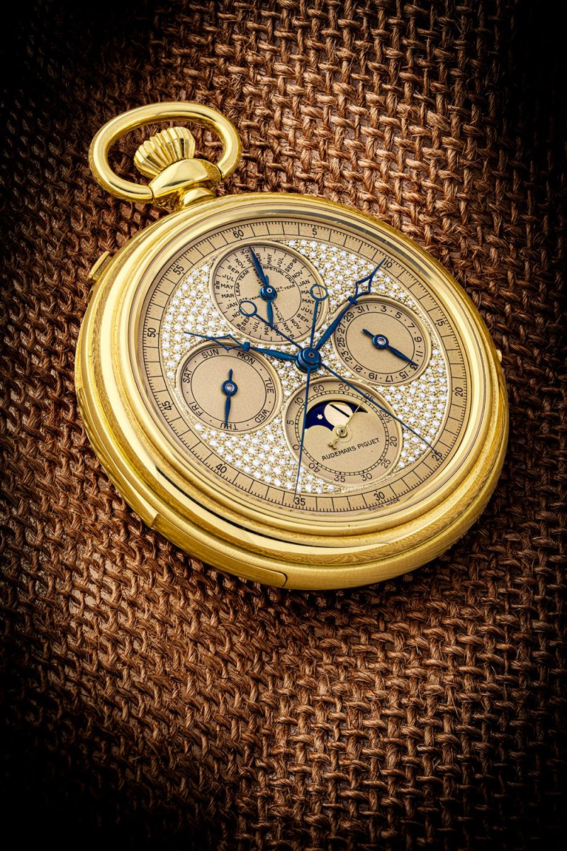 根據愛彼的檔案記錄,懷錶所用的半成品機芯於1973年從LeCoultre & Cie購入,歷史可追溯至1930年代大複雜功能時計的黃金時代。這枚懷錶由愛彼完成製作,配備「JSMCCRVQ」機芯。(估價:港元550,000-1,100,000)