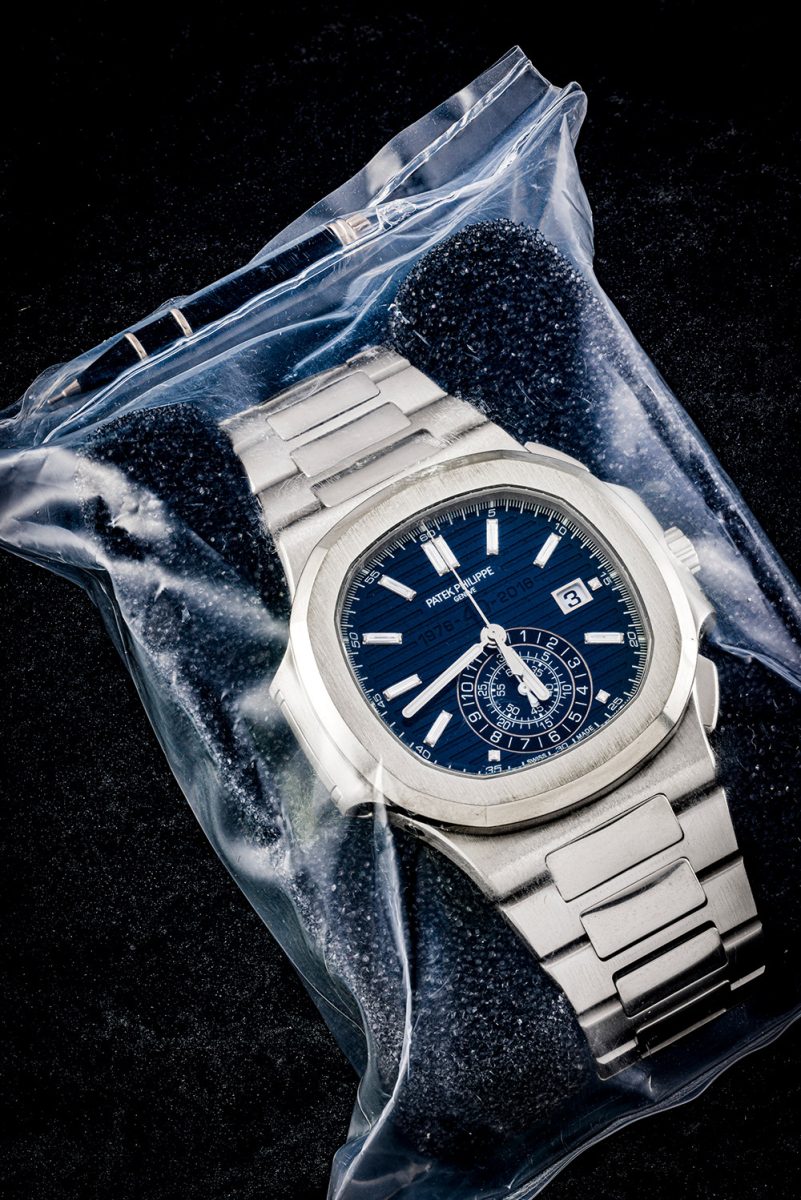 百達翡麗Nautilus Ref.5976/1G,18K白金鑲鑽石自動上鍊計時鏈帶腕錶,配日曆顯示,為慶祝百達翡麗Nautilus 40周年而製,約2017 年製。 (估價:港元2,000,000-4,000,000)