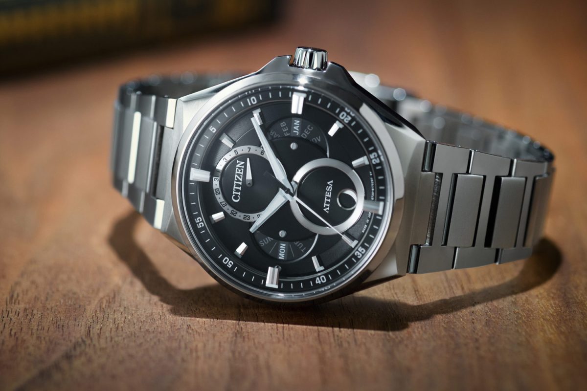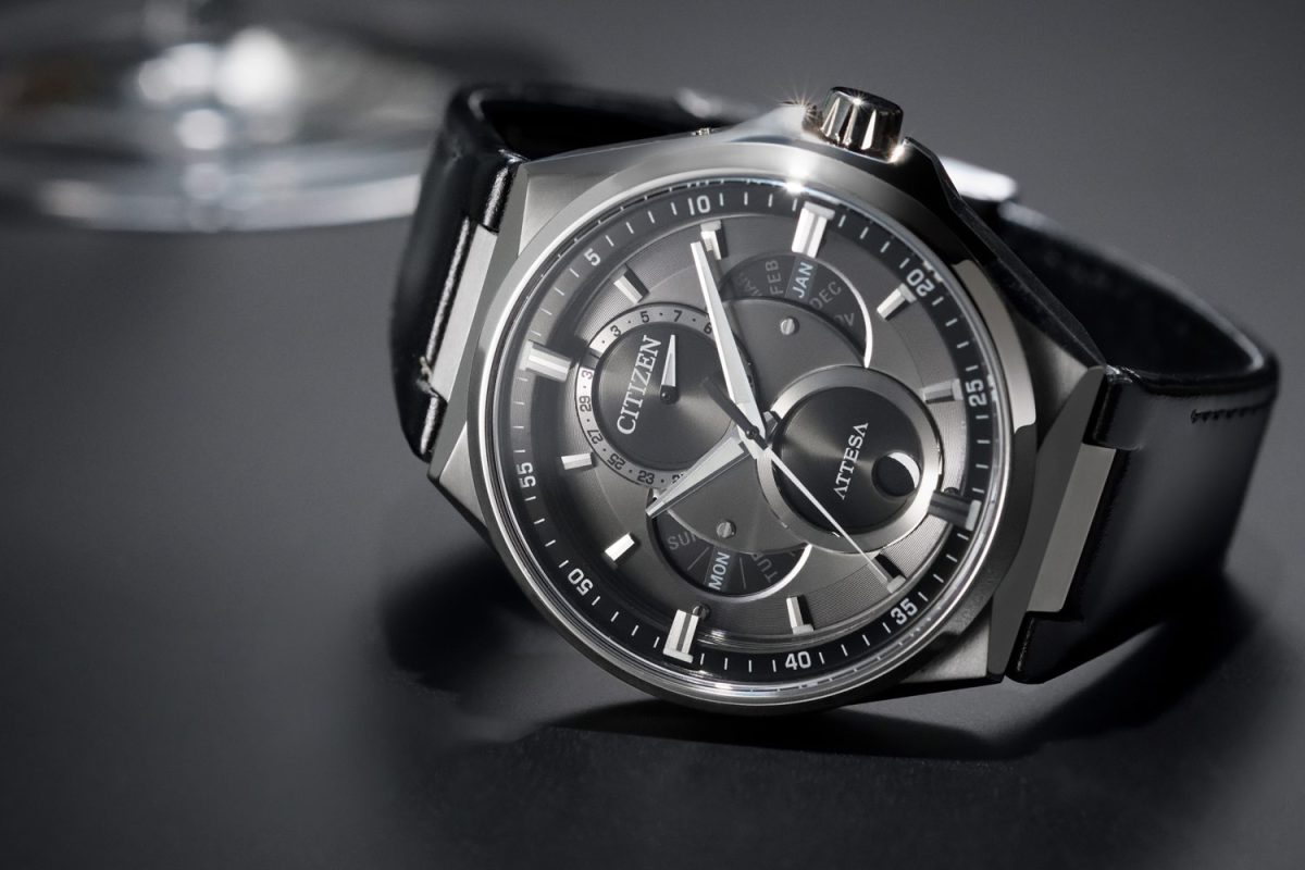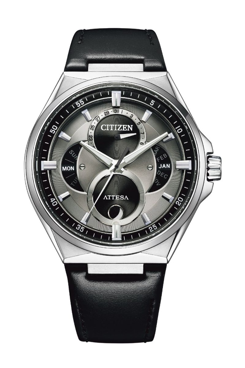 「蝕月黑」的BU0060-68E則是透過亮銀色的鈦金屬錶帶展現如同黑夜中透出的一道月光般非凡的色澤。BU0060-09H「月夜灰」錶盤配色以深沉且延展性強烈的灰色基底,與紳士風格的小牛皮錶帶相應,十分符合現今日系商務休閒穿搭。CITIZEN期盼透過三款全新「光動能月相腕錶」,共同與全台型男打造日系紳士品味的全新篇章。
