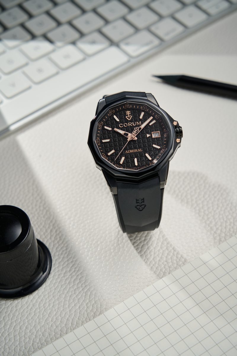CORUM Admiral 38 Black Unisex 自動腕錶/錶徑:38mm/機芯:CO 082自動上鍊機芯/動力儲存:42小時/防水深度:100m/建議售價: NTD 181,000