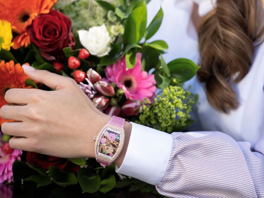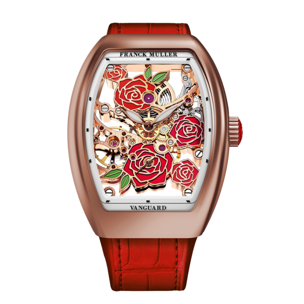 FRANCK MULLER打造極簡風格板橋與底板設計,以鏤空方式裁剪出花型結構,與機械機芯悄然相連,成為兼具裝飾與實用功能的腕錶必備構件。佩戴者可欣賞到手繪琺瑯花和機芯全貌,擺輪裝飾和手工倒角等工藝細節亦悉數盡顯。手繪玫瑰花洋溢自然氣息,於腕錶間恣意綻放,搭載微型手動上鍊機芯,擁有長達4天的動力儲存。FRANCK MULLER結合多項工藝,淬煉出這款獨特的女士腕錶典範之作,並賦予其多重意蘊,詮釋現代女性精神和迷人優雅的氣質。