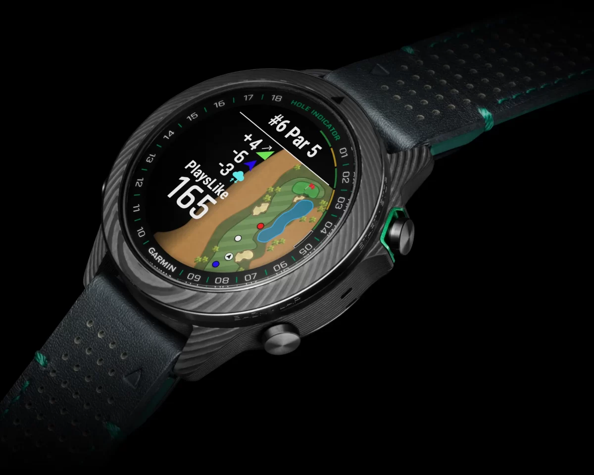 只為追求卓越、自信揮桿而生,採用高球手專屬錶盤,隨時查看球局精彩表現,並將內錶圈設計為1-18洞刻度印記,呼應對征服果嶺的嚮往,搭配生動的跳色按鍵座設計,以及防汗抗污的穿孔式設計FKM氟橡膠皮革混合材質錶帶,異材質結合特殊縫線技術,確保兼具耐久性與時尚優雅精神。可預載超過43,000幅高爾夫球道圖資和全彩CourseView地圖,有助於制定出色戰略,更進一步升級「球道攻略提示功能」和揮桿落點分佈圖,並強化「PlaysLike Distance坡道距離補償」,提供更準確的距離感知,搭配「AutoShot揮桿自動偵測」可自動記錄擊球距離,配備Approach CT10揮桿追蹤感測器,實現更多自動化表現追蹤功能,精準自信只為致勝一擊。