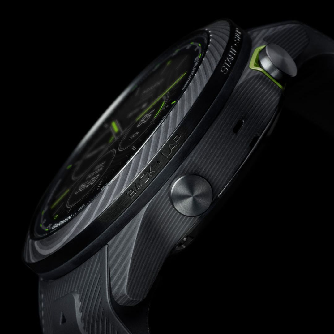 秉持永不妥協的職人精神,Garmin在碳纖維應用上更展現技術性的突破,由於碳材料會阻擋、扭曲或吸收電磁信號,在一款由碳纖維製成、佩戴在手腕上移動的小型手錶中,確保GPS性能是一個巨大的挑戰,Garmin歷經七年研發突破,設計團隊針對MARQ 錶款開發全新獨家天線設計架構,搭配高透光率、頂規防刮弧面藍寶石玻璃鏡面保護46mm錶盤,以及清晰易讀、高彩度顯色的1.2吋炫彩AMOLED觸控螢幕,完美達成同時兼具精準卓越性能與時尚美感的極致工藝。經由從零開始精雕細琢的製程工藝,鑄就凌駕鈦金屬、極致輕量化、堅固耐磨的全新錶款,引領智慧錶頂級工藝邁向全新高度。