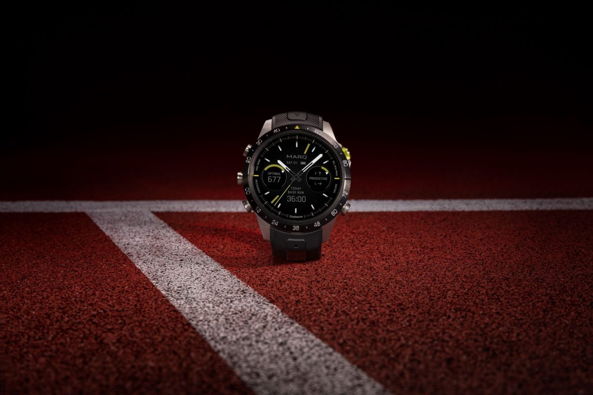 專為超越自我極限所打造,採用超輕量鈦合金為基底堆疊DLC鍍膜髮絲紋錶圈,提升抗刮耐磨表現,拉絲處理錶面加工體現更多細節與流線感,採用獨家設計將VO2 MAX 最大攝氧量和預估恢復時間的量測刻度表現於錶圈上,透過錶面上螢光箭頭指向變化即時了解運動表現及進度,搭配極輕高強度黑色矽膠錶帶,即使在激烈賽事中也能完美包覆、持續精準感測,醒目的曜日黃啟動按鍵,展現運動家追求極致的無懼精神。
