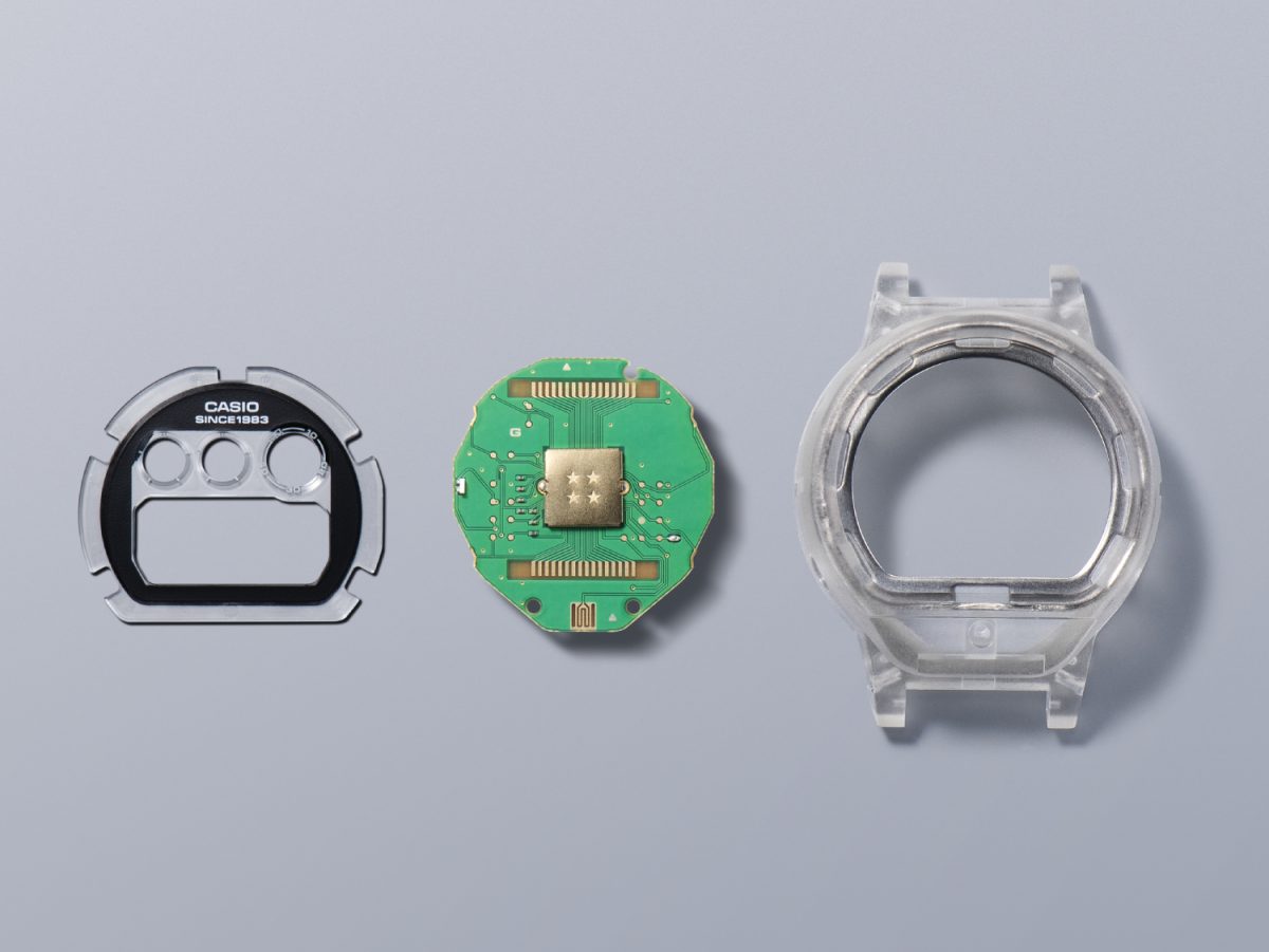 CLEAR REMIX系列DW-5040RX、DW-6940RX與DWE-5640RX的 LCD顯示採用透明材質打造,讓底層的電路板完整展現出來。在獨家開發的電路板上,金屬LSI護蓋施以金色IP處理,並刻上四顆星星以紀念G-SHOCK 40周年,結合裝飾在電路板上的字母G和G-SHOCK Logo,可透過使用LED背光燈照明和透明導光板實現這項可以從外部看到的新穎玩味設計。