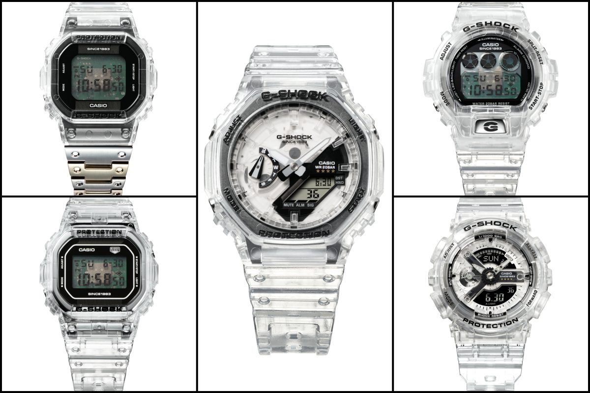 G-SHOCK 40周年紀念錶款推出全新CLEAR REMIX系列,建議售價NT$4,900- NT$7,700。全系列錶款整體皆以透明的外殼呈現,打造出前所未有的清晰外觀,在錶殼、錶帶、按鈕等零件都換上透明感的材料,可以直接透視G-SHOCK堅韌的零件結構,全系列推出七款品牌熱門款與經典款,包含首款配備背光燈的 DW-6900 、經典方形設計的 DW-5600、人氣大錶殼的GA-110和GMA-S110 、八角錶圈設計的 GA-2100與其縮小尺寸的GMA-S2100,而以DW-5600 為基礎的 DWE-5640RX採用樹脂與不鏽鋼製成三重材質錶帶,透過材質上對比與反差,向過去經典G-SHOCK型號中使用的材質致敬,同時也為40週年劃下全新里程碑。此外,作為 40 周年紀念錶款CLEAR REMIX系列皆在設計細節暗藏許多元素,刻印象徵 40 周年的 4 顆星星與「SINCE 1983」圖樣的錶帶扣環,左下功能按鈕上的星星,背蓋與數位顯示錶款背光燈的 40 周年logo等等。