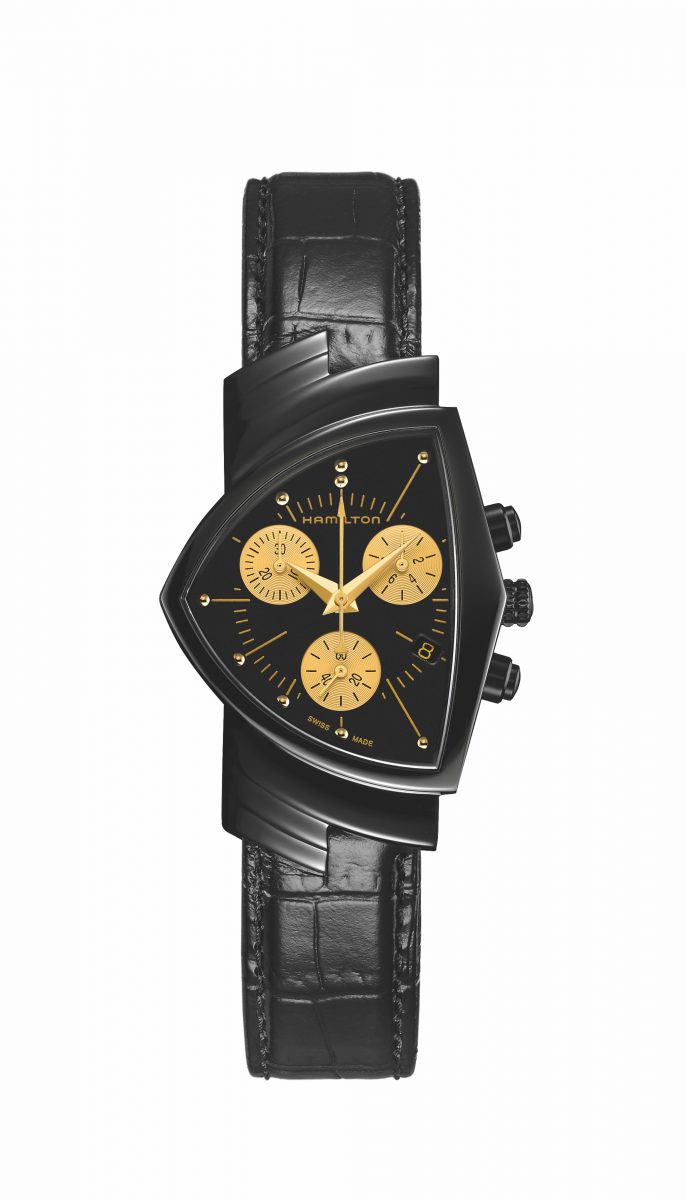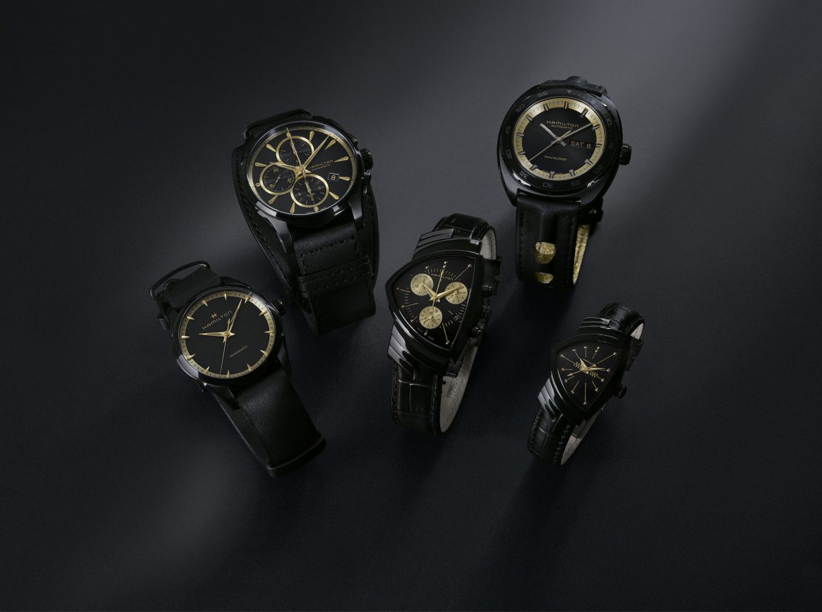 金色指針、刻度和分鐘/秒鐘軌在錶殼和錶盤的黑色啞光表面下顯得格外耀眼,使各個不拘一格的腕錶系列匯聚於同一雙色調下。啞光黑色或黑金色錶帶進一步突顯微妙配色,而自動上鍊和石英機芯的組合,以及各種錶殼的造型,則可滿足各種品味。全新黑金系列向品牌與好萊塢數十載的關係致意,禮讚雙重設計,囊括了由光影構成的腕錶。