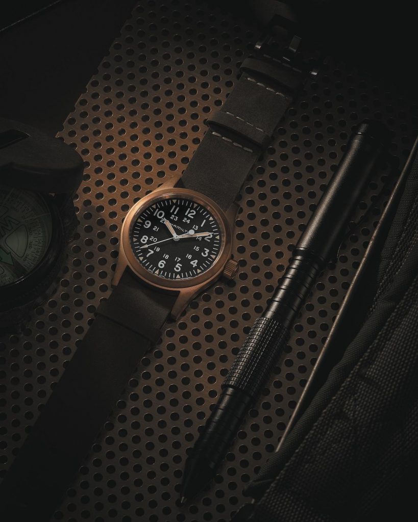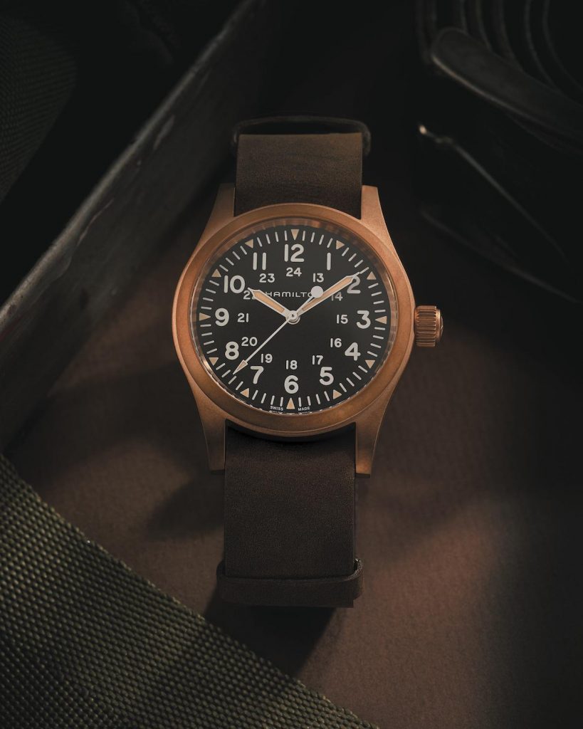 全新Khaki Field卡其野戰系列青銅機械腕錶續寫傳奇故事。秉承品牌從1940年起為美國、英國和其他軍隊製造無數腕錶的精神與風格,這款青銅腕錶的經典設計、優良品質與低調風格,深受全球收藏家與腕錶愛好者的青睞。