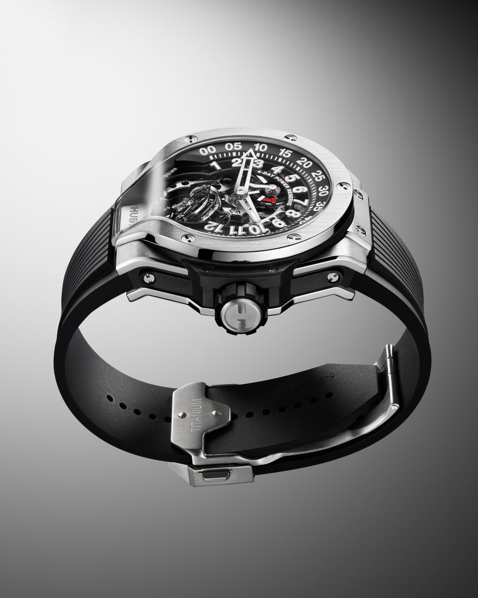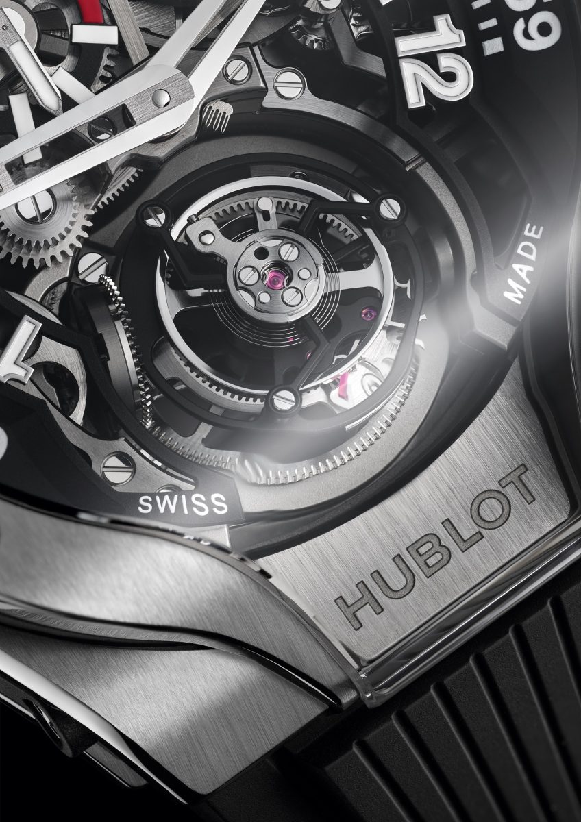 HUBLOT BIG BANG MP-13雙軸陀飛輪雙逆跳鈦金腕錶/錶徑:44mm/機芯:HUB6200手動上鍊雙軸陀飛輪機芯/動力儲存:96小時/防水深度:30m/全球限量50只/建議售價: NTD 5,093,000