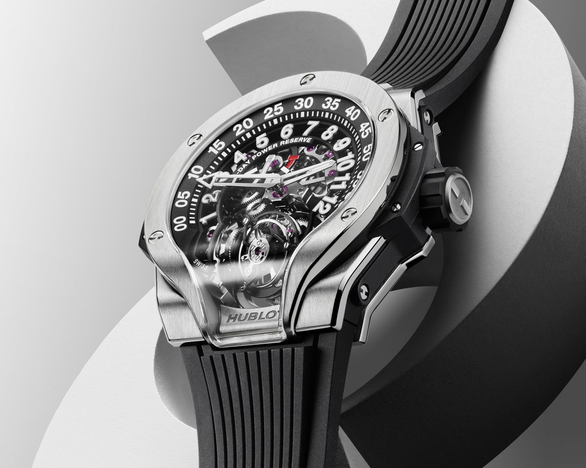Hublot 宇舶錶 Big Bang MP-13雙軸陀飛輪雙逆跳鈦金腕錶終於抵台,搭載自製雙軸陀飛輪驅動的手動上鍊機芯,配備雙逆跳顯示功能,4日動力儲存更為同類型錶款中最久長動能,其44毫米的鈦金屬錶殼設計俐落大氣,搭配黑色立體橡膠錶帶,不僅提升配戴的輕巧舒適度,還為消費者提供了更豐富、更有趣的佩帶體驗。