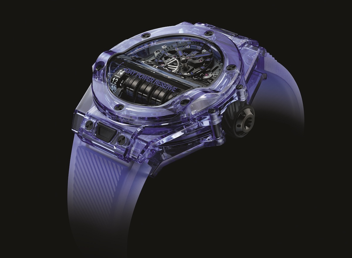 BIG BANG MP-11藍色藍寶石腕錶/錶徑:45mm/機芯:HUB9011自製手動上鏈鏤空機芯/動力儲存:14日/防水深度:30m/建議售價: NTD 4,088,000