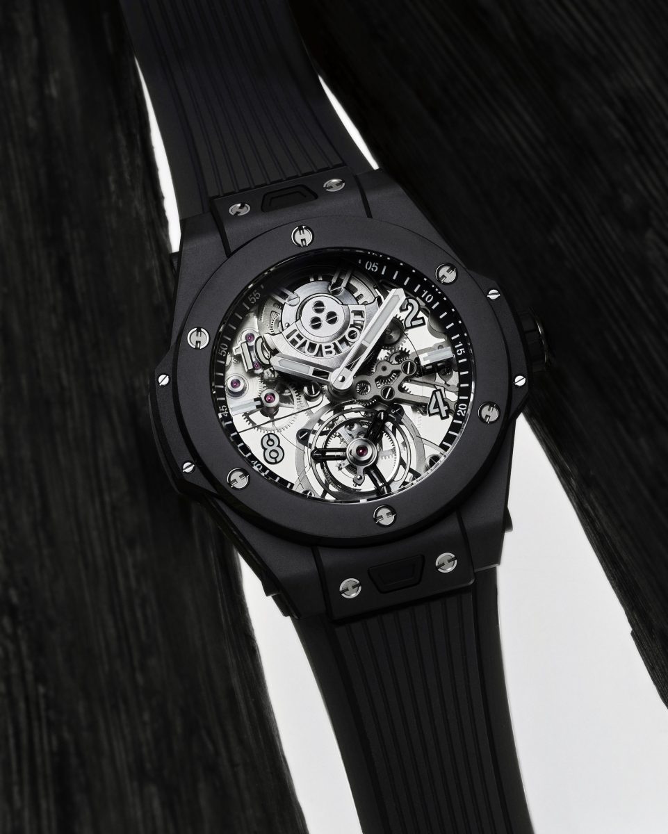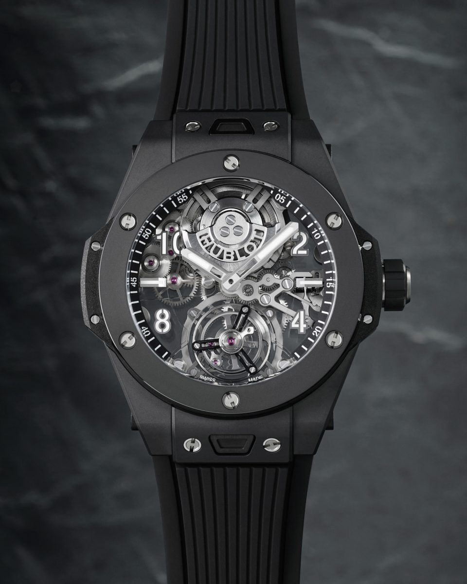 BIG BANG TOURBILLON BLACK MAGIC/錶徑:45mm/機芯:HUB6035 陀飛輪自動上鏈機芯/動力儲存:72小時/防水深度:30m/建議售價: NTD 3,107,000
