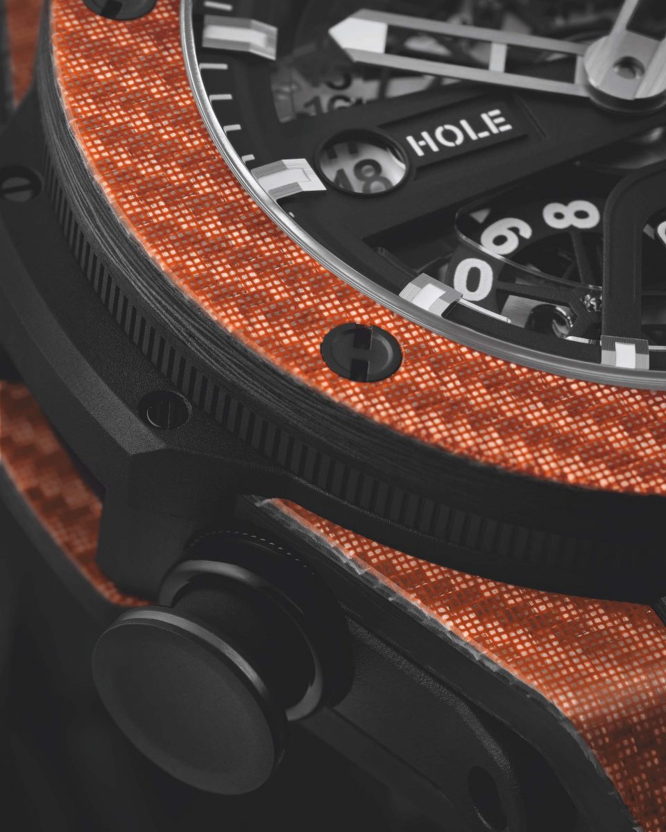 憑藉宇舶為Unico機芯研發的模組,Big Bang Unico 高爾夫球錶可通過三個視窗分別顯示高爾夫玩家的當前洞數、該洞的桿數以及本回合的總桿數。Big Bang Unico 榮耀橘高爾夫球錶沿襲了這一設計,錶殼以散發球王陽光般的強者氣場橘色鍍鋁碳纖維製成,整只腕錶重量極輕,僅98克,搭載宇舶MHUB1580自動上鍊機芯,提供72小時動力儲存,搭配同色系高科技複合材質錶帶,運用「One Click」單鍵快拆錶帶裝置,可於擊球時和球賽後,快速更換不同造型和功能的錶帶,防水深度達100米。全球僅限量100枚。