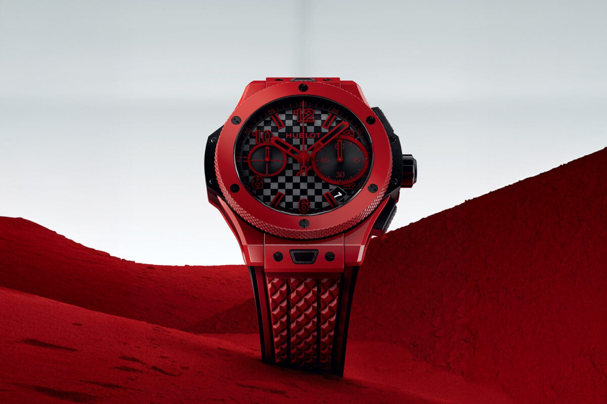 高飽和度的紅色陶瓷展現Hublot的材質專利技術,視覺張力極強。搭配紅色橡膠錶帶與紅色計時盤設計,整體一致又極具辨識度,適合追求焦點與個性的錶友。