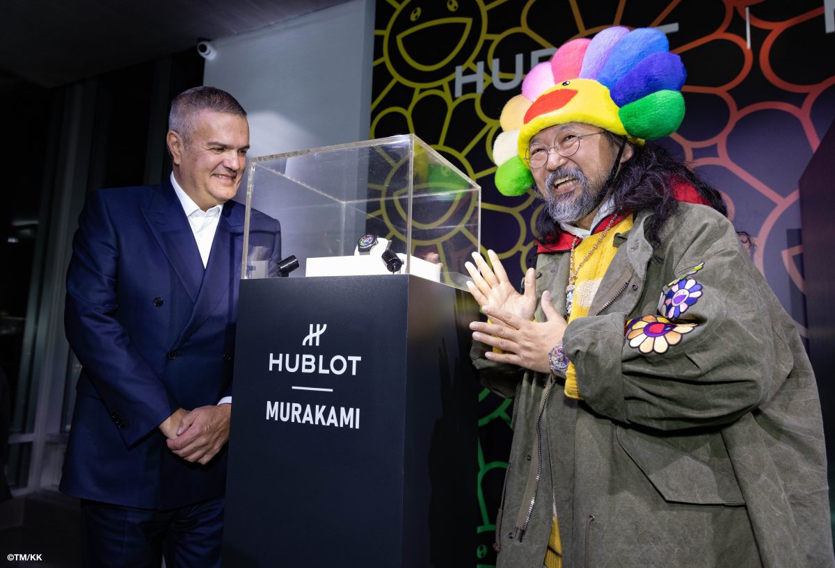 2023年Hublot 宇舶錶再次與當代藝術大師村上隆合作,在 2月2日於紐約宣布啟動全新聯名藝術計畫,推出以村上隆標誌性的微笑之花為設計元素,一系列共13只聯名腕錶及13只NFT數位藝術作品,透過分階段的數位銷售方式,以購買權與擁有權,優先禮遇給宇舶與村上隆聯名腕錶和NFT聯名數位藝術作品的的藏家。經由這次宇舶與村上隆的合作,腕錶結合NFT數位藝術作品,已成為”宇舶愛藝術’的活動領域,將聯名藝術合作拓展至更多元的場域。