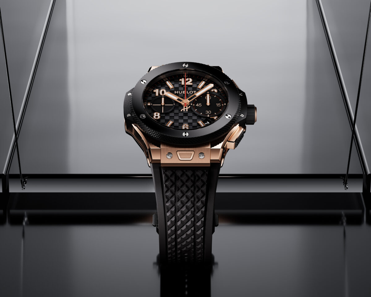 BIG BANG系列 20 週年UNICO限量版皇金陶瓷款/錶徑:43mm/厚度:13.20mm/防水:100 米/機芯:MHUB1280.20YEARS:UNICO 自動上鍊飛返計時機芯/動力儲存: 72 小時/訂價:1,245,000 NTD