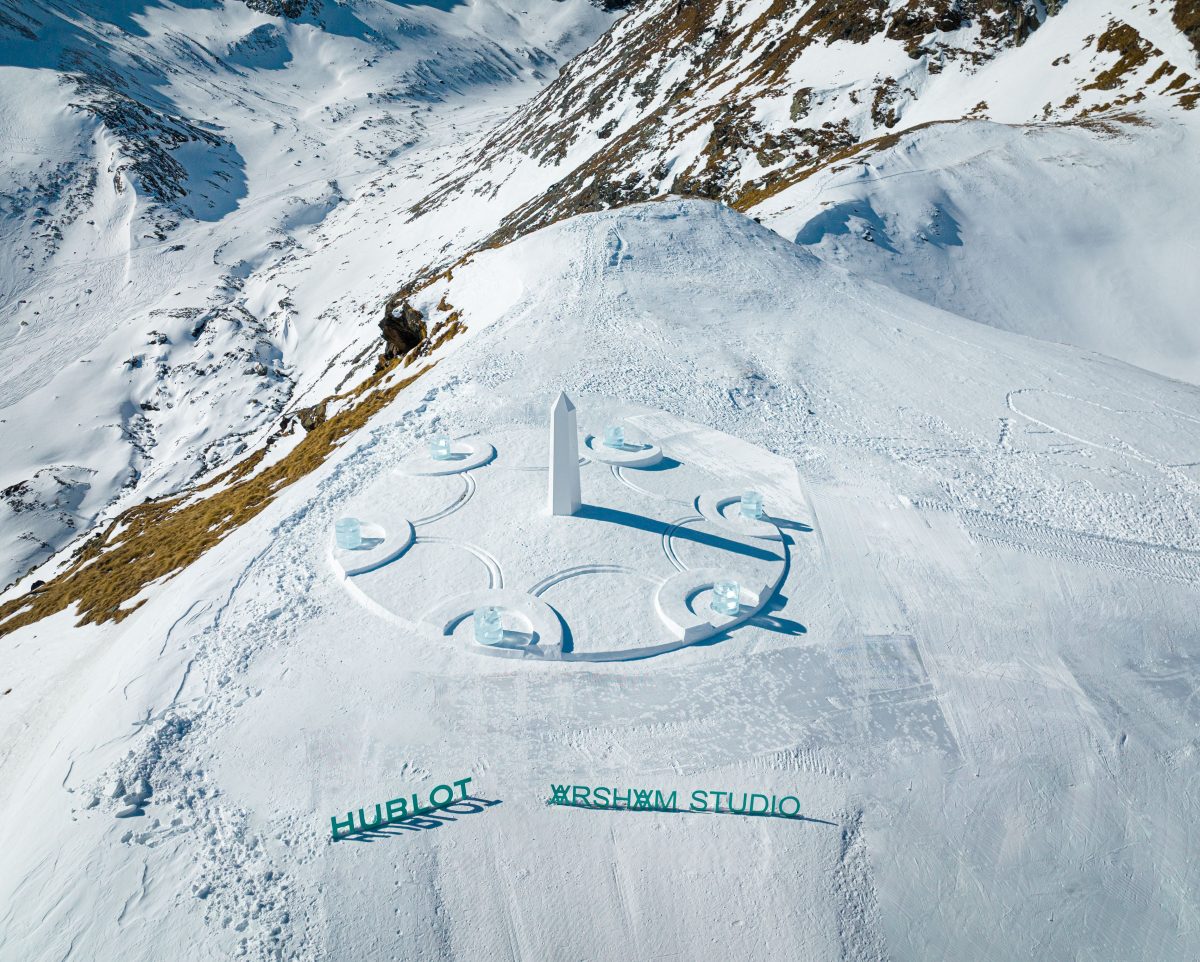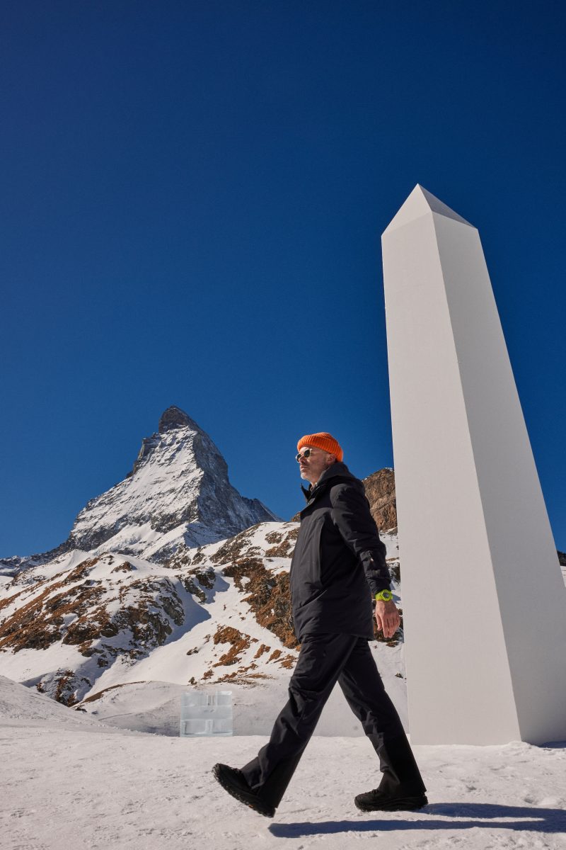 Daniel Arsham常於作品中探索時間的奧秘,其打造的Connecting Time系列,被稱為“神秘的當代考古學”。雙方在瑞士策馬特所建構的Light & Time雪中日晷限時地景裝置,以石英晶體形狀的方尖碑投射的陰影指示時間,藝術家透過自然元素,創造這座結合藝術和時間的特殊裝置。