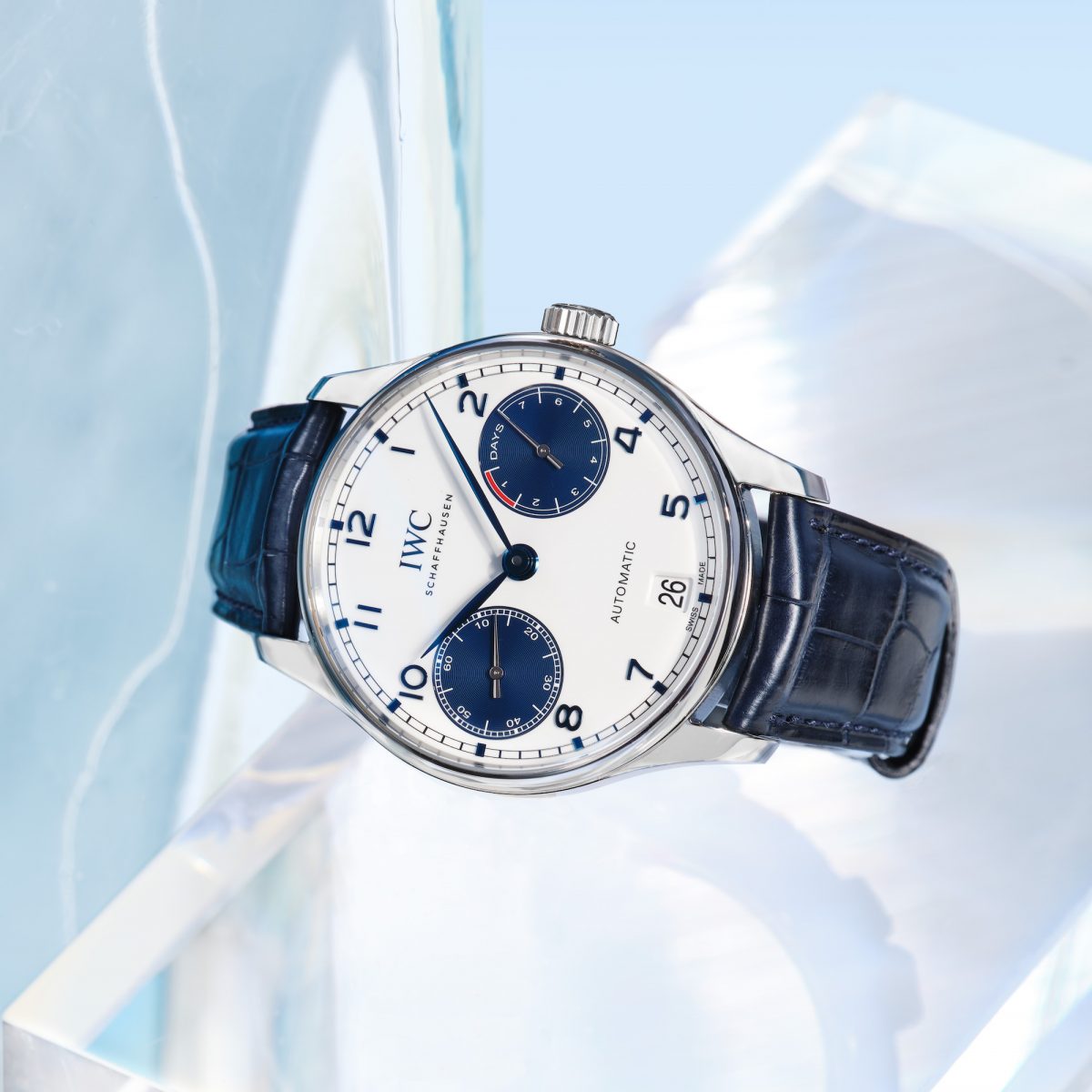 IWC萬國錶的IWC葡萄牙系列經常使用對比鮮明的錶盤及小錶盤設計,使其往往被鐘錶愛好者戲稱為「熊貓錶盤」。兩種顏色的組合提升閱時清晰度並形成非常獨特的外觀。今年夏天,這家瑞士高級腕錶製造商為極具代表性的IWC葡萄牙系列再添兩名新成員,運用相同的設計元素並搭配對比鮮明的白色及藍色錶盤。白色錶盤採用拋光漆面處理,深藍色小錶盤則呈現「同心圓紋」飾面。充滿海洋氣息的色彩不只為兩款經典時計帶來清新而現代的外觀,也讓人聯想起IWC葡萄牙系列的起源,其經典設計最初的靈感就是來自甲板觀測錶。