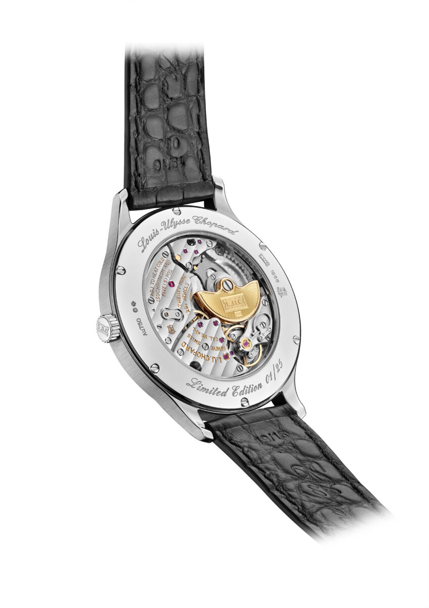除了精緻的美學設計,此腕錶更搭載來自蕭邦製錶工坊的精密機芯。L.U.C 96.41-L超薄機芯是品牌於1996年首款經典機芯的進化傑作,配備22K金偏心式微型擺陀,其高慣性可為兩個發條盒高效上鏈。這兩個發條盒採用蕭邦Twin技術巧妙疊加,即使機芯厚度僅3.30毫米,依然能提供長達65小時的充沛動力儲備。