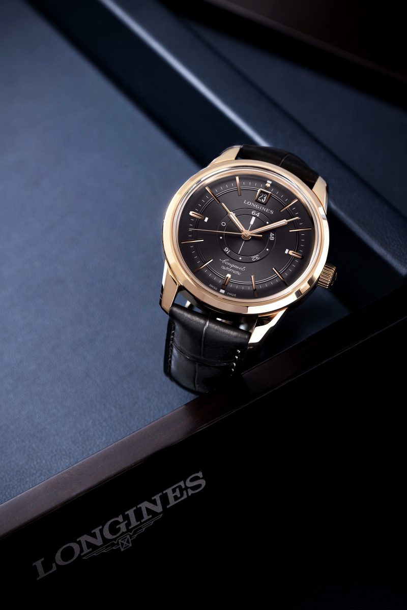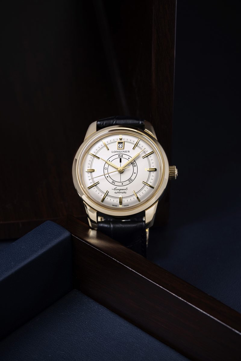 為紀念CONQUEST系列誕生70週年(1954至2024年),浪琴表重新詮釋CONQUEST型號9028之經典腕錶,推出全新CONQUEST HERITAGE中央動力儲存指示腕錶18K黃金/玫瑰金限量版本,再次重新演繹面盤中央的兩個旋轉圓盤呈現動力儲存狀態,向該款古董腕錶致敬。這種將動力儲存指示設置在中央轉動圓盤的設計是由浪琴表發明且獨家使用,其中央內圈圓盤上的棍形指標搭配中央外側轉盤可指示機芯動力的消耗程度(從64至0),顯示所剩餘的動力儲存小時,亦即腕錶還能運行的時間。另外,透過手調轉動錶冠或手腕動作為錶上鏈時,能讓中央外側旋轉圓盤轉動,為腕錶儲存動力。因此,其面盤的外觀美學會持續變化,營造一種原創、時光流動的詩意。