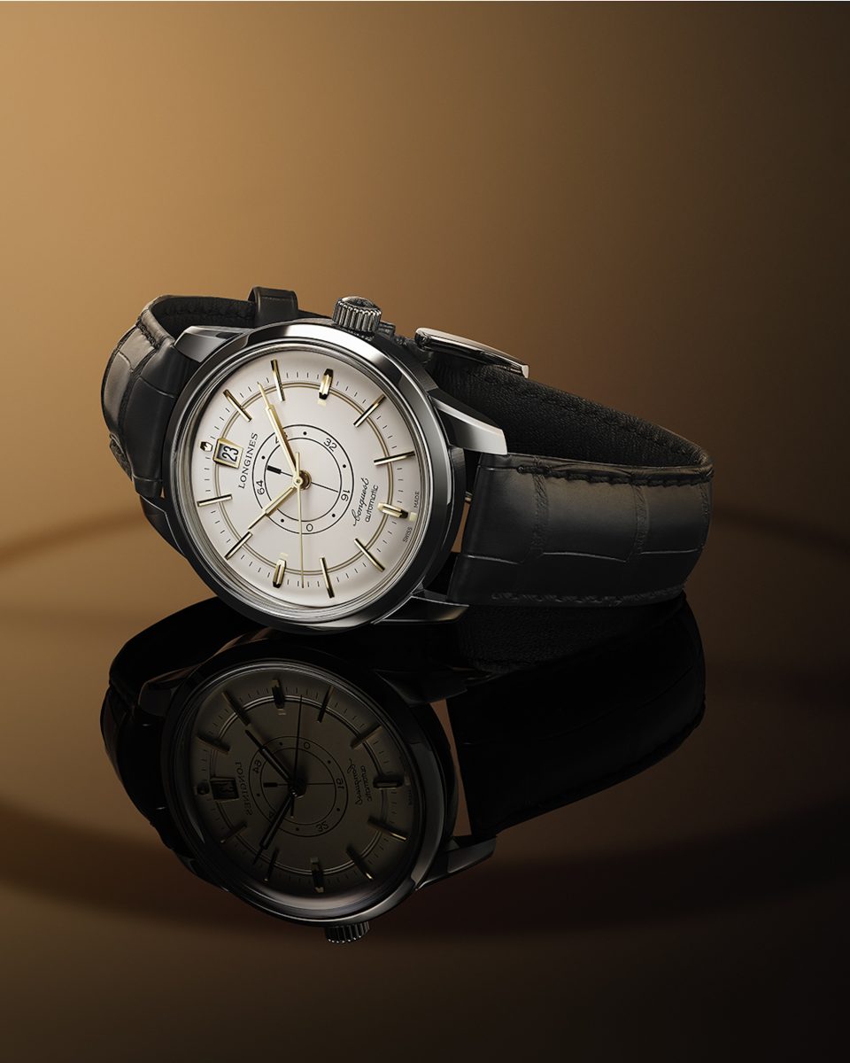 Conquest Heritage中央動力儲存指示腕錶展現浪琴表的製錶工藝與雋永優雅。此錶可透過透明旋入式底蓋細細鑑賞的全新獨家浪琴表L896.5機芯負責驅動,這款自動上鏈機芯配備矽游絲與創新零件,並提供比ISO 764抗磁標準高十倍的抗磁性能。