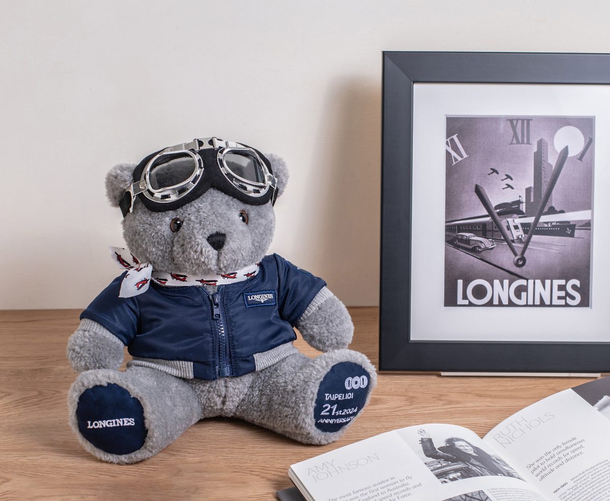 同時,浪琴表更首度與台北101購物中心合作,共同推出LONGINES x TAIPEI 101 限量珍藏第21代聯名紀念熊,歡慶台北101購物中心21週年生日活動。此外,浪琴表也於旗下台北101名品店推出專屬限定款式的LONGINES x TAIPEI 101 聯名飛行小熊,以品牌藍色為基調打造飛行夾克,並搭配飛行領巾、飛行眼鏡以及懷錶風格隨身鏡,為聯名飛行小熊創造兼具時尚與優雅的專屬造型外,更呼應浪琴表於人類飛行演進史上所扮演的重要角色,以及傳承無所畏懼的先鋒精神。