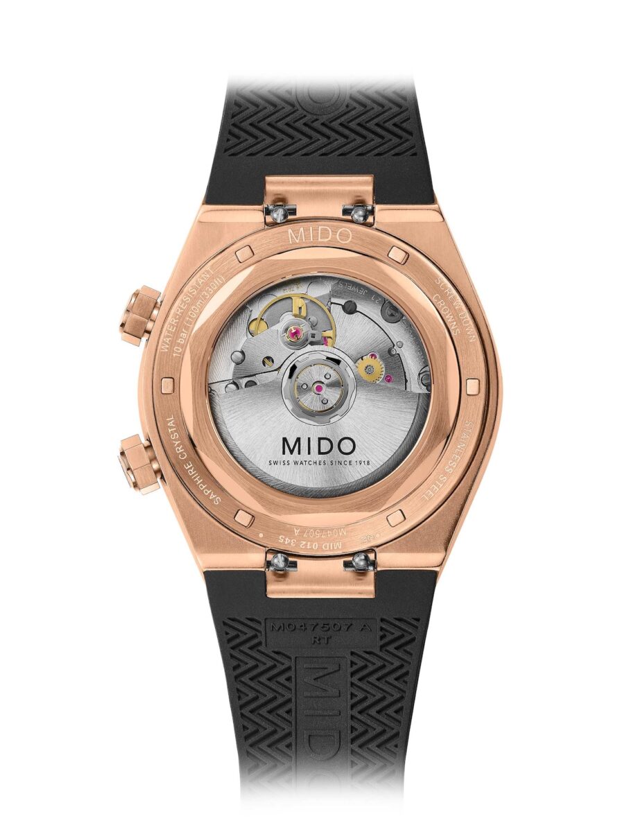 材質:不銹鋼PVD/錶徑:40 mm/機芯:MIDO Caliber 72 自動上鍊機芯/動力:72小時/防水:100 公尺/訂價:NT41,100NTD