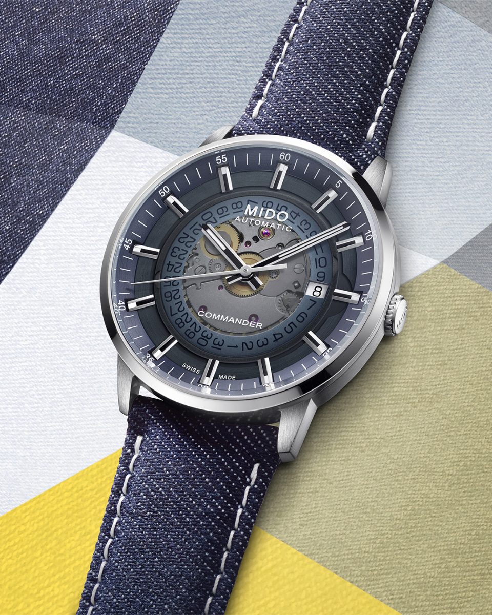 漸層鏤空結合丹寧時尚 MIDO 香榭系列漸層鏤空80小時腕錶