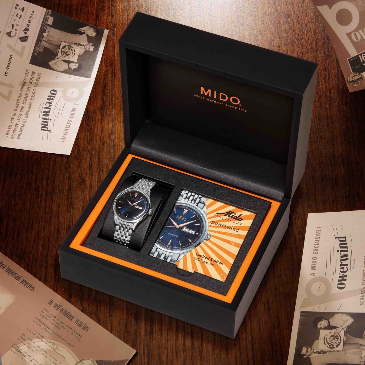 全新腕錶限量發售1,954只,附特殊錶盒,並配備瑞士官方天文台(COSC)認證證書以及限量編號證書。Multifort Powerwind先鋒系列天文台認證復古限量錶即日起於MIDO直營專賣店及MOMO品牌旗艦館獨家販售。
