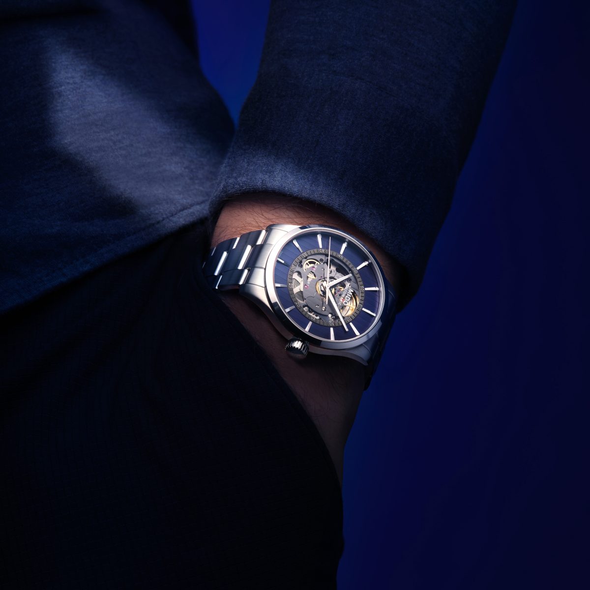 MIDO先鋒系列鏤空腕錶再添一新色,推出「極光藍」錶盤宛如北極光似的神秘迷人,搭配鏤空的面盤設計,呈現霓光般多層次光影。新款腕錶的深藍色錶盤與絲光打磨的不鏽鋼錶殼相得益彰,為冬季搭配的暗色調大衣外增添一抹光澤感,帶來更多時尚穿搭的選擇,建議售價為 36,800 新台幣。