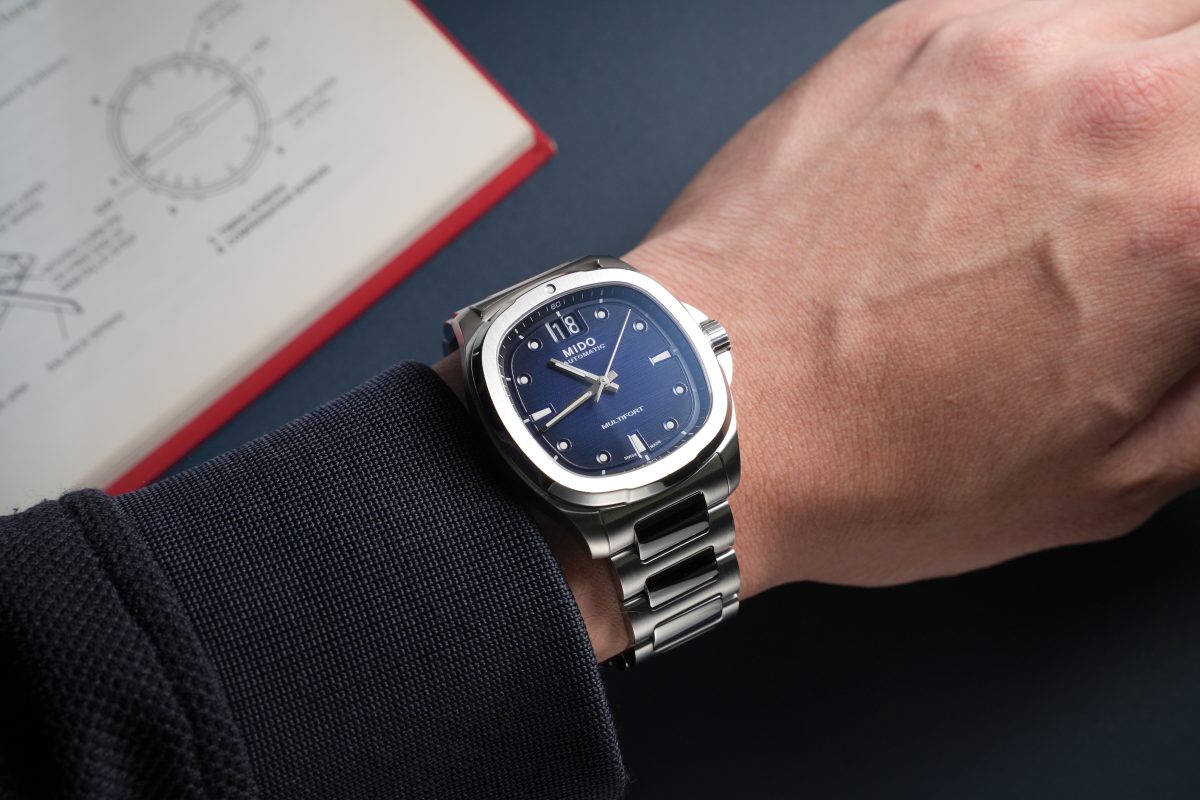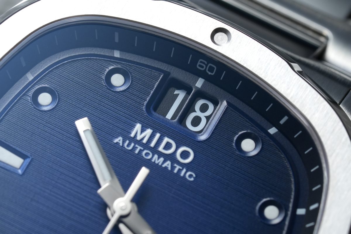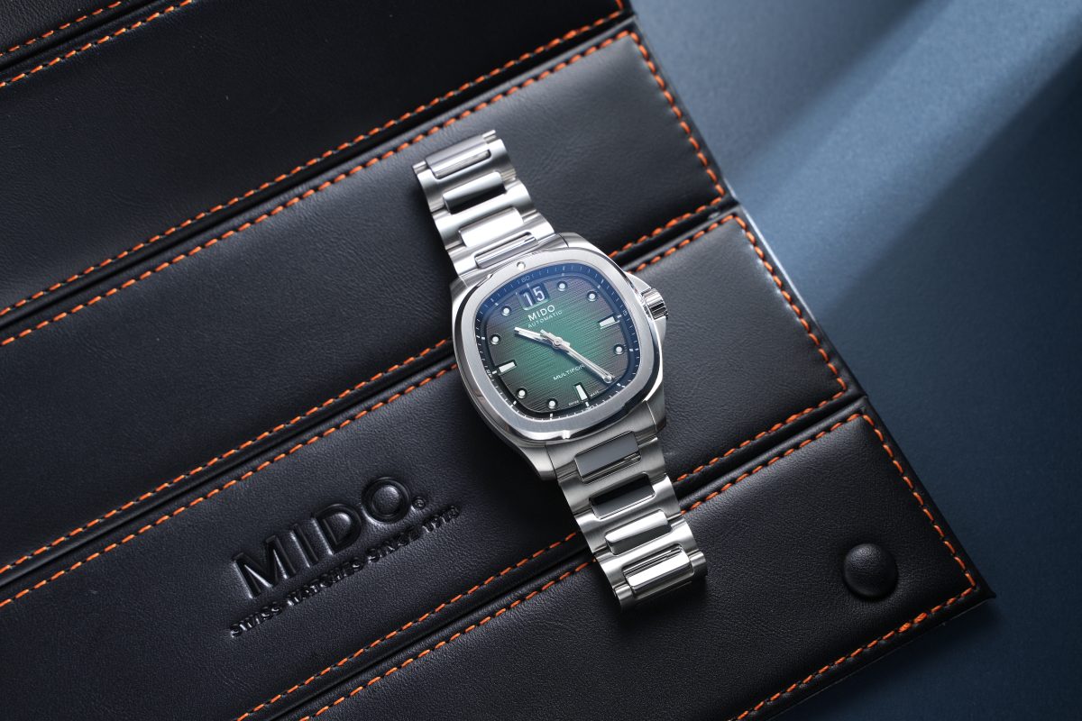 Multifort TV Big Date 先鋒系列TV大日期窗腕錶/錶徑:40mm x 39mm/機芯:MIDO Caliber 80自動上鍊機芯/動力儲存:80小時/防水深度:100m/建議售價: NTD 35,700