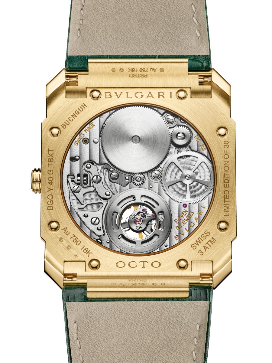 天然大理石堅硬耐久,但若是為了加工而切割成薄片,就會變得異常脆弱。為滿足 Octo Finissimo系列對纖薄極限的追求,寶格麗以無與倫比的材料工藝,打造出僅 0.8 毫米厚的大理石錶盤,展現品牌在多元材質的應用上的領先地位。此新作搭載 BVL 268 手動上鍊機芯,厚度僅 1.95 毫米,提供 52 小時動力儲備。其構造之纖薄、設計之優雅,堪稱材料創新與製錶藝術的又一顛峰,締造出令人讚嘆的技術與美感雙重奇蹟。