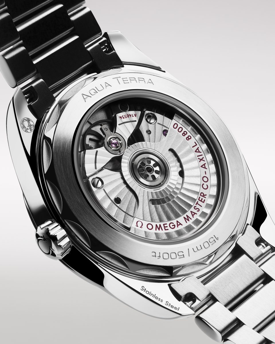 透過藍寶石水晶錶背,可以看到41毫米型號搭載的8900同軸精擒縱大師天文台機芯,以及38毫米和34毫米型號搭載的8800大師天文台機芯,皆榮獲瑞士聯邦計量科學研究所(METAS)的業界最高標準認證,保證精確度、性能和耐磁性。腕錶防水深度達到150米(500英尺),並由歐米茄提供的五年保固進一步保證其品質。