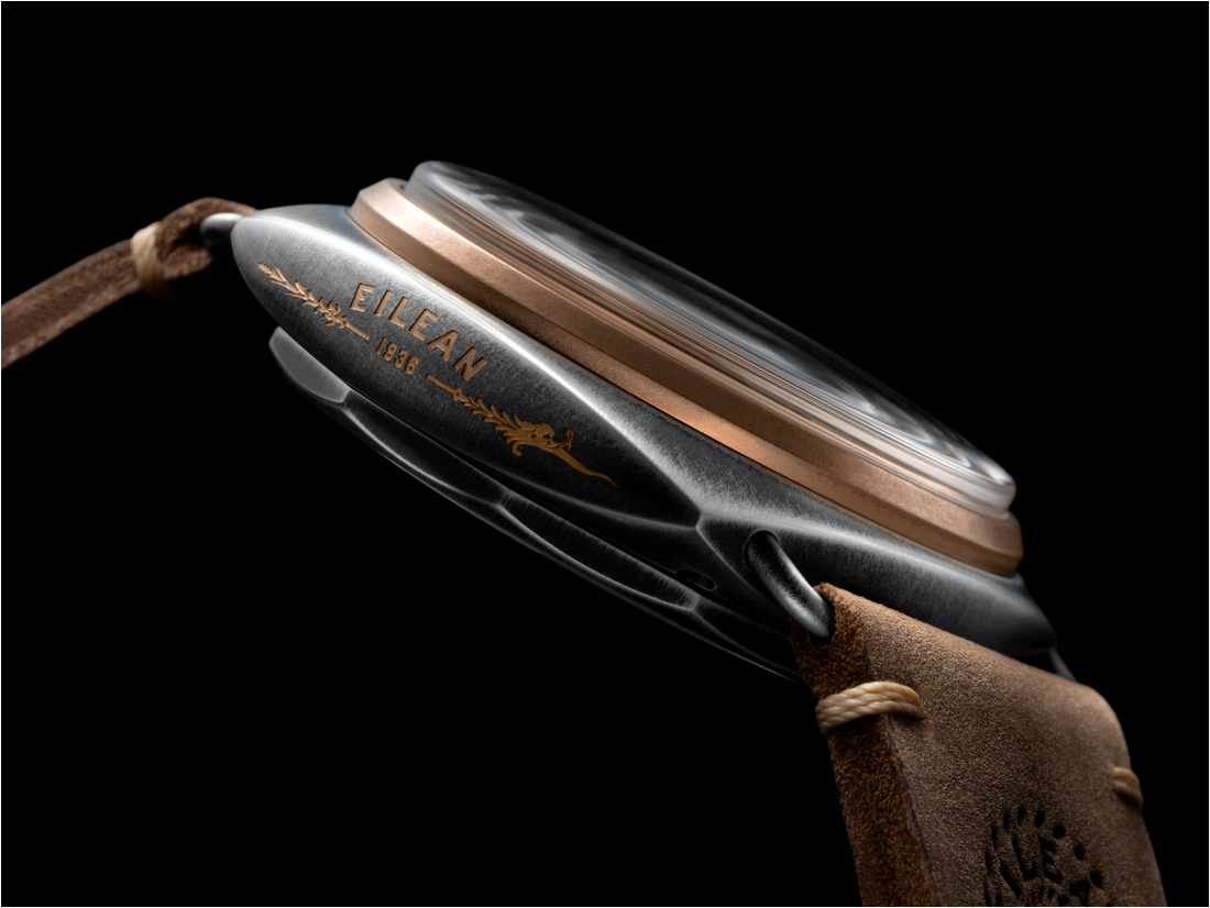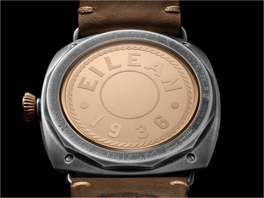 這次的新品 PAM01643 的設計美學全面展現出沛納海的航海基因,將出色的功能性與雋永的風格融為一體。米色顆粒紋錶盤呼應了 Eilean 號的風帆,喚起曾經於海上乘風破浪 的感受。以 Radiomir 系列最具標誌性的夜光數字與柔和色調的時標設計,為錶盤增添了溫暖且復古的氣質。深棕色皮革錶帶上壓印了紀念 Eilean 號首航年份「1936」 的字樣。錶背的青銅徽章也精心鐫刻了「Eilean」字樣以及其首航年份,進一步彰顯出腕錶與此傳奇帆船之間深厚的淵源。除此之外,Eilean 號船體的龍形徽章裝飾也以雕刻的形式再現於錶殼左。2025年1月起將在沛納海專賣店正式發售。