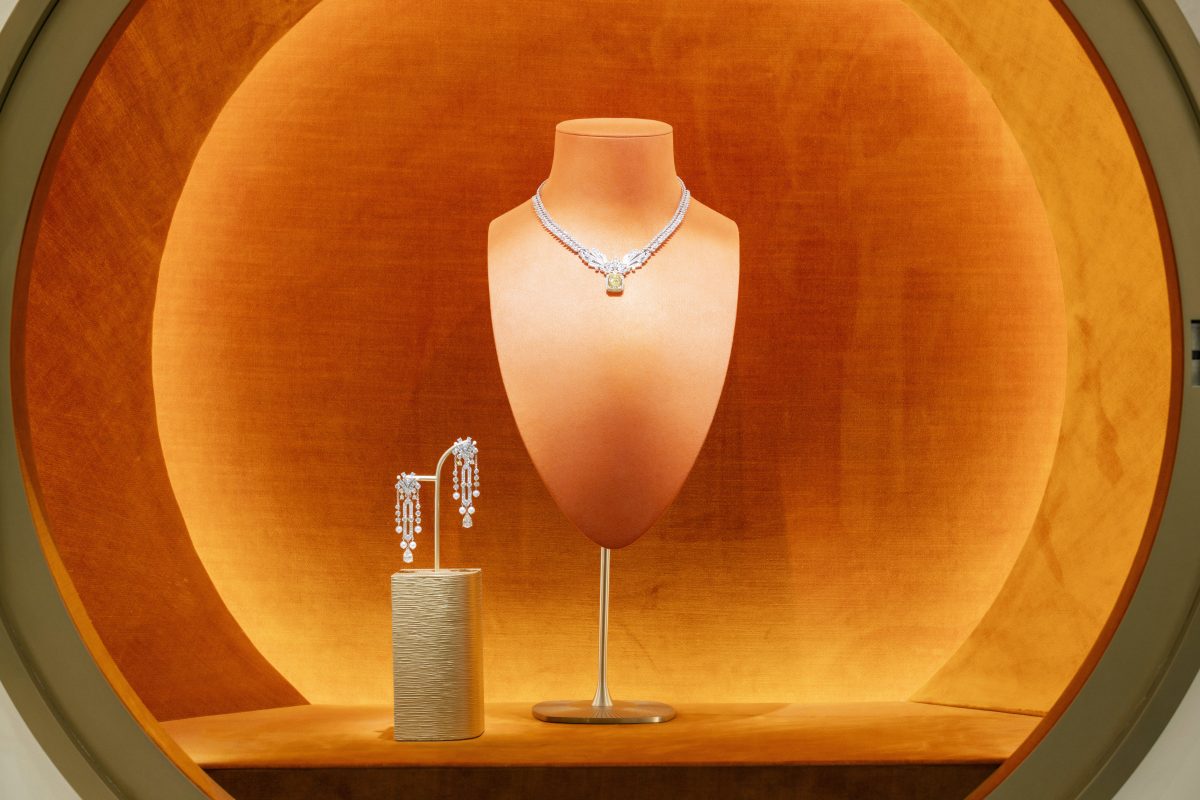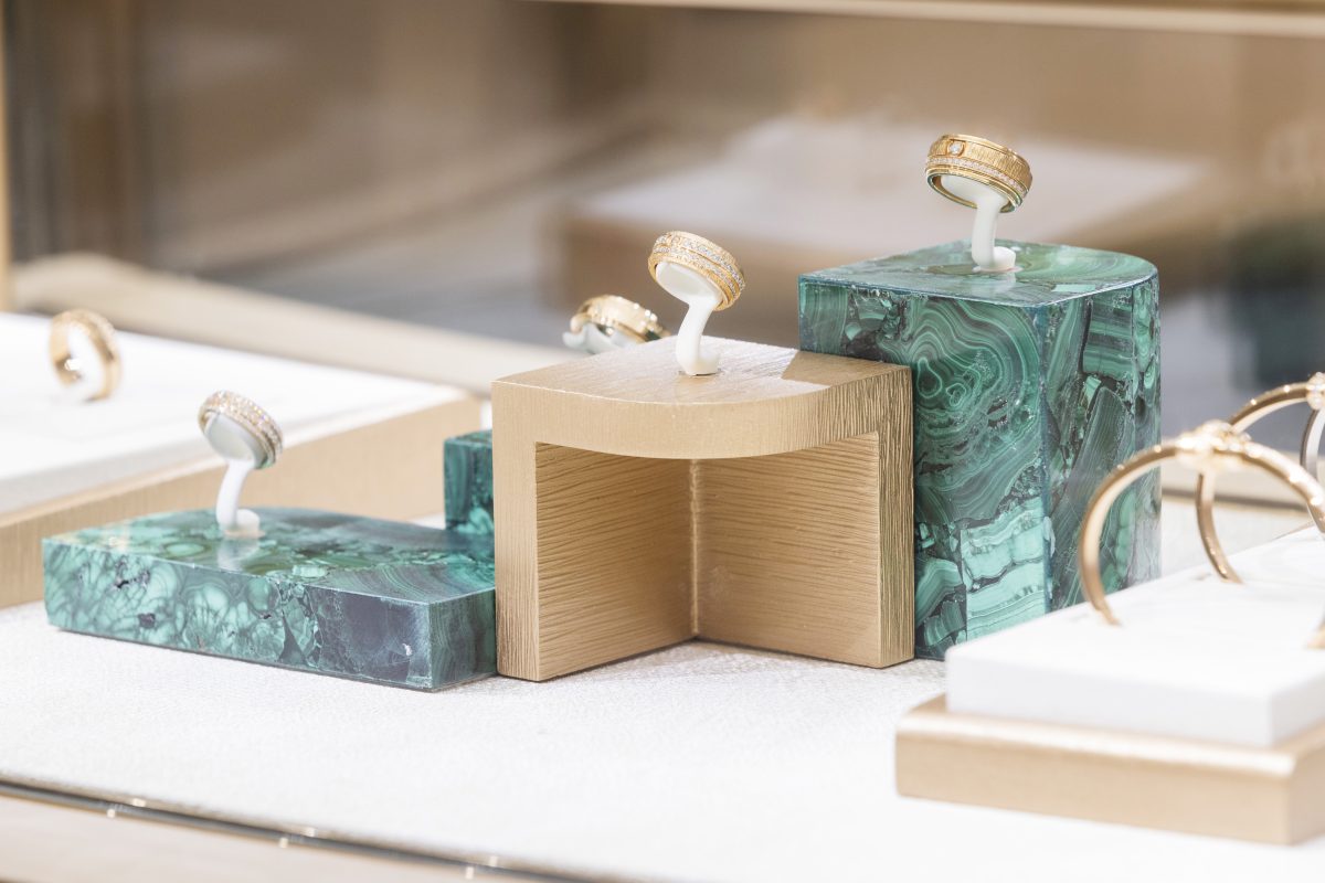 全新的 PIAGET 台北 101 形象概念精品店,宛如一件碩大的伯爵頂級珠寶作品的誕生,整體充斥著工藝美學和珠寶知識含量,處處藏有細節與驚喜。 Rafael de Càrdenas 的設計衷旨,在於將值得被關注的動人細節放大為亮點、突顯不規則的美、交錯對比的手法等,創造出繁盛優雅的和諧美感。