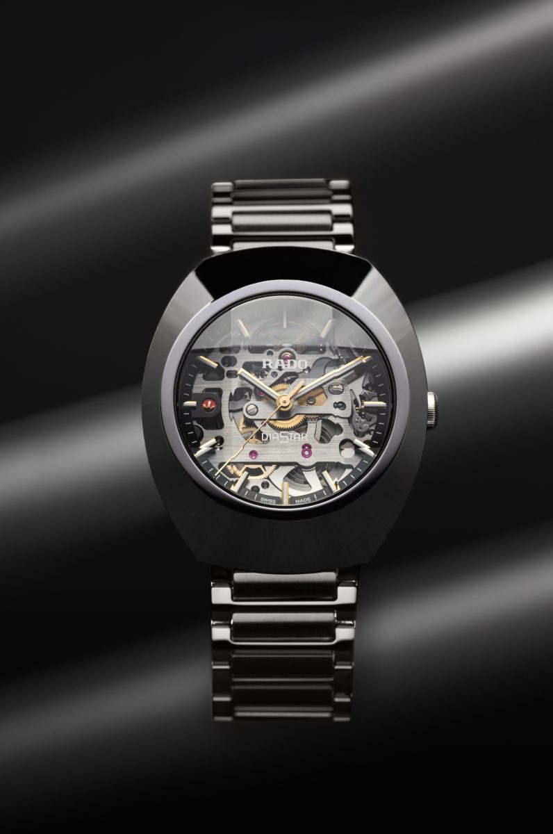 全新DiaStar 鑽星系列創始型鏤空腕錶,擴大延伸 Rado 瑞士雷達表的創意概念「鏤空藝術」,並在此錶款中採用優質 R808 型自動機芯、煙灰色塗層,同時在機芯運作之間輔以多種元素,呈現可愛動人的視覺對比。透過正面和背面的藍寶石水晶玻璃窗,將機芯的華麗細節展現的技術優雅一覽無遺。