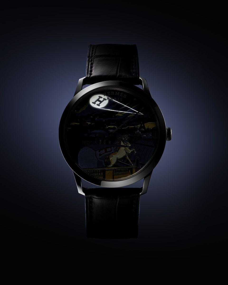 SLIM D’HERMÈS Minuit au Faubourg 工藝腕錶/錶徑:39.5mm/機芯:愛馬仕自製 H1950 超薄自動上鍊機械機芯/動力儲存:42小時/防水深度:30m/建議售價: NTD 2,106,000