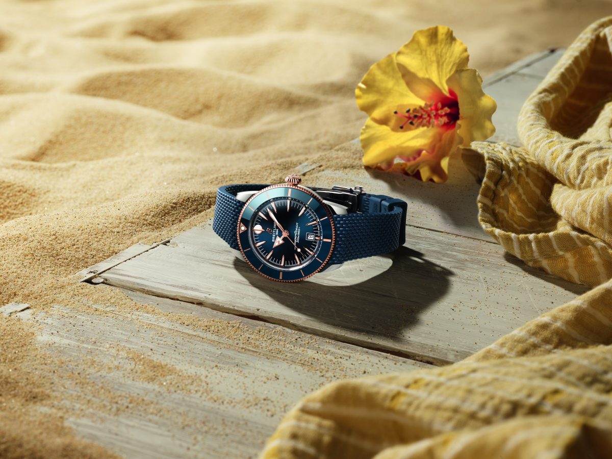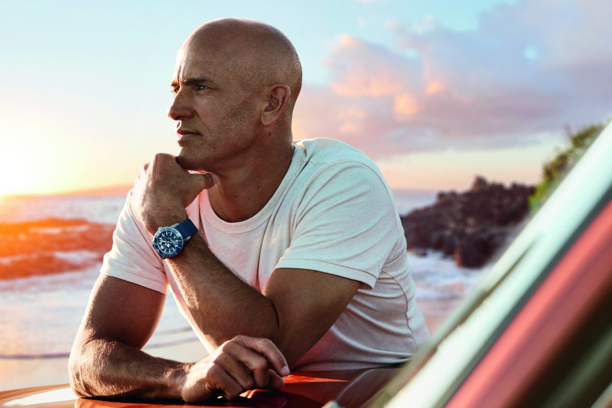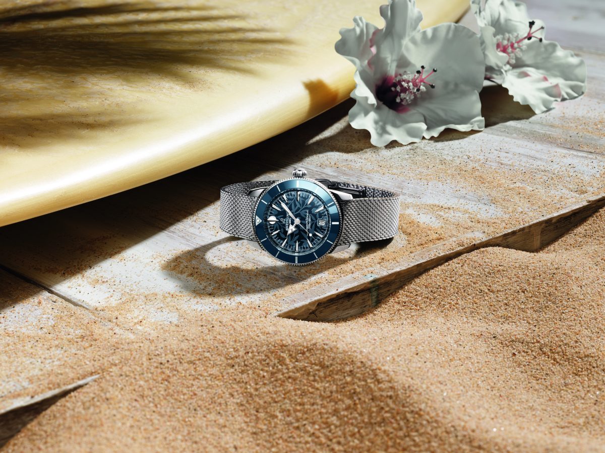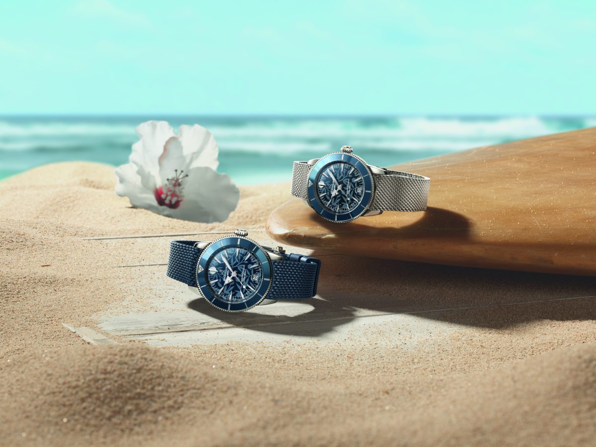 「百年靈多年來一直陪伴著我,」史萊特表示。「這款腕錶展現了我所熱愛的一切:海洋、大自然,還有我始終嚮往的那份自在風格。」