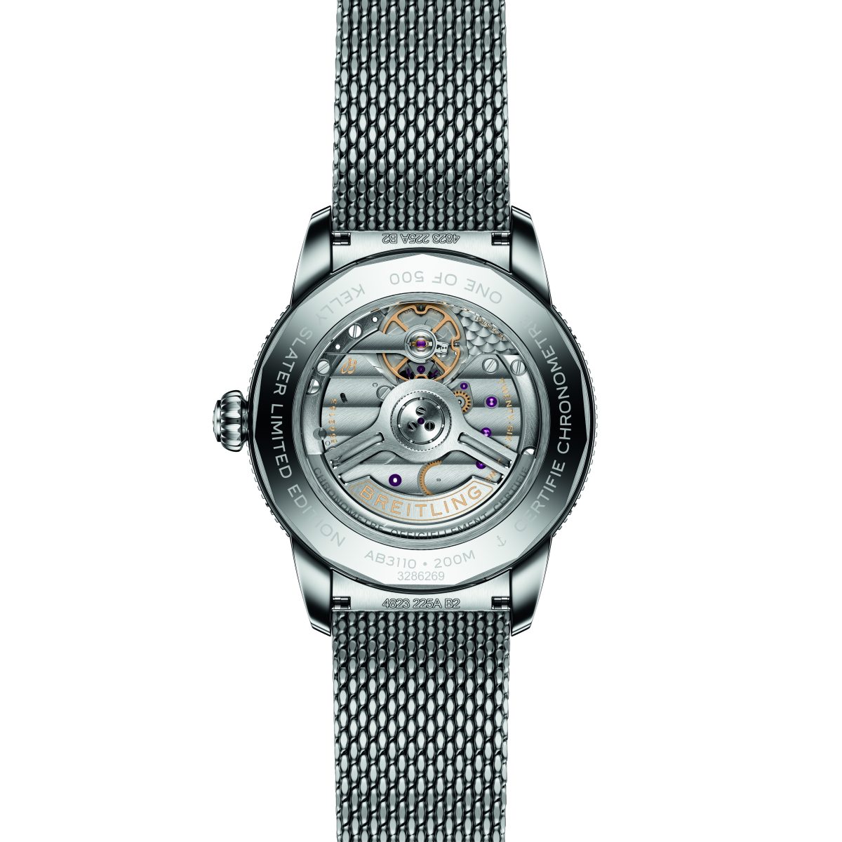 錶盤飾有靈感來自熱帶樹蔭光影的葉影圖紋,展現濃厚的自然氣息。錶背採用透視設計,可欣賞內部B31自製機芯運作,外圈鐫刻有「One of 500」與「Kelly SlaterLimited Edition」字樣。腕錶提供藍色橡膠編織錶帶或精鋼編織錶鏈兩種選擇,搭配專屬展示錶盒,飾有同款夏威夷花卉圖騰,並隨附來自凱利·史萊特(Kelly Slater)的訊息。