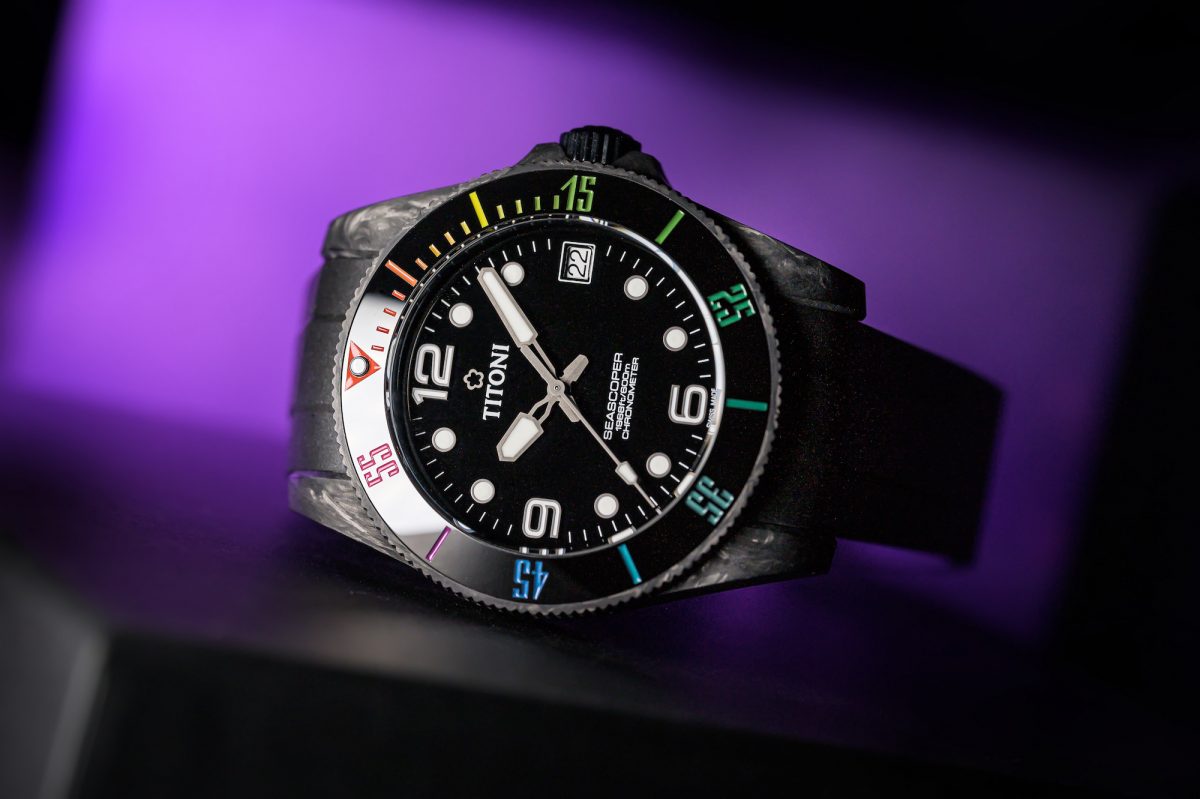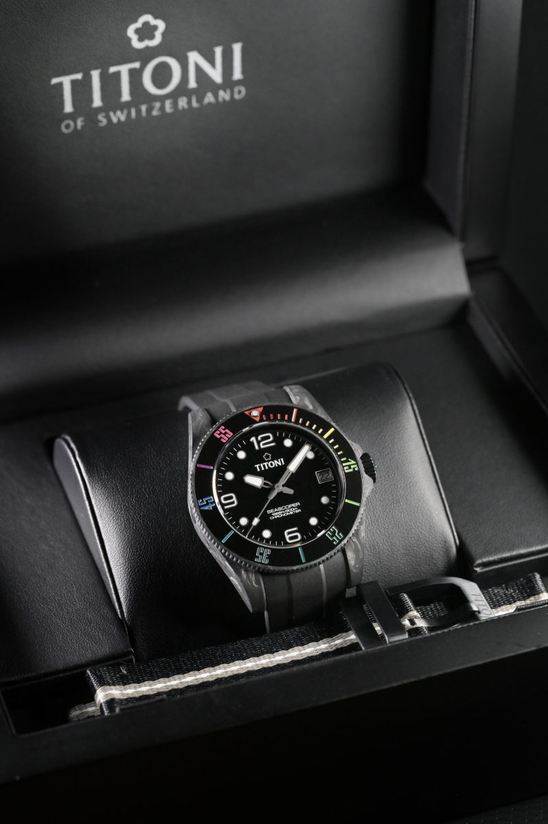 百年瑞士獨立製錶品牌TITONI 膾炙人口的人氣之作,Seascoper ,於近日推出全新款式Seascoper CarbonTech,使用科技材質CarbonTech 打造,融入潮流不敗黑魂元素以及絢麗彩虹陶瓷外圈,不論配戴舒適度、運動氣息時尚設計以及輕盈耐用都大大升級,將為夏末的錶圈捲起新潮流的滔天巨浪。