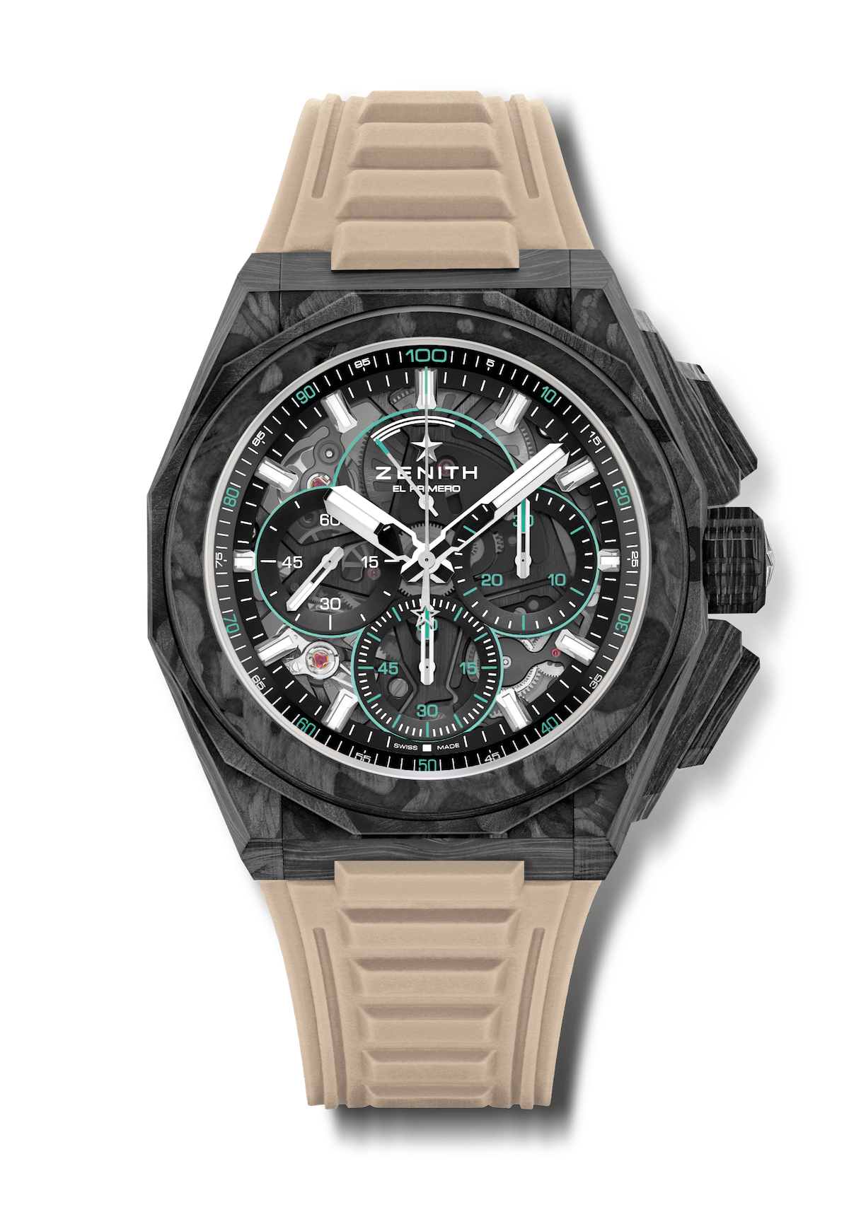 Zenith真力時將其最堅固的1/100秒計時腕錶設計得更加輕巧,同時保有DEFY Extreme E限量版腕錶與生俱來的韌性。DEFY Extreme E限量版腕錶通過Extreme E極端賽況和環境的考驗,為系列中首款完全以輕巧而堅韌的碳纖維製成的腕錶(包括按把和保護裝置)。腕錶僅重96克,包括錶帶和三重摺疊式碳纖維錶扣。