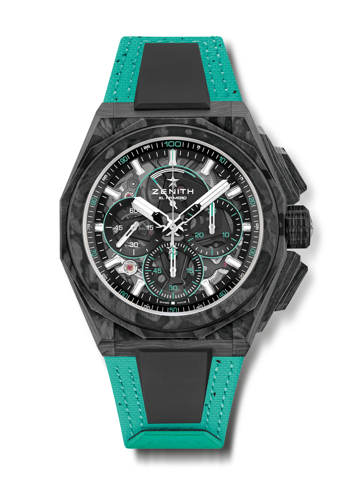 Zenith真力時為Extreme E電動車越野錦標賽第三賽季打造了其劃時代1/100秒計時腕錶至今最輕巧的錶款:DEFY Extreme E限量版腕錶。DEFY Extreme E限量版腕錶將高性能材質與計時無比精準的高振頻計時機芯結合,腕錶設計所展現的價值觀,與Extreme E和Zenith真力時HORIZ-ON倡議計劃共有的企業社會責任目標和承諾一致。腕錶飾有以代表Extreme E的「活力綠」呈現的鮮明細節,以表示對氣候變化的認知和行動,錶帶和包裝採用來自賽事的回收及升級再造零件製成。