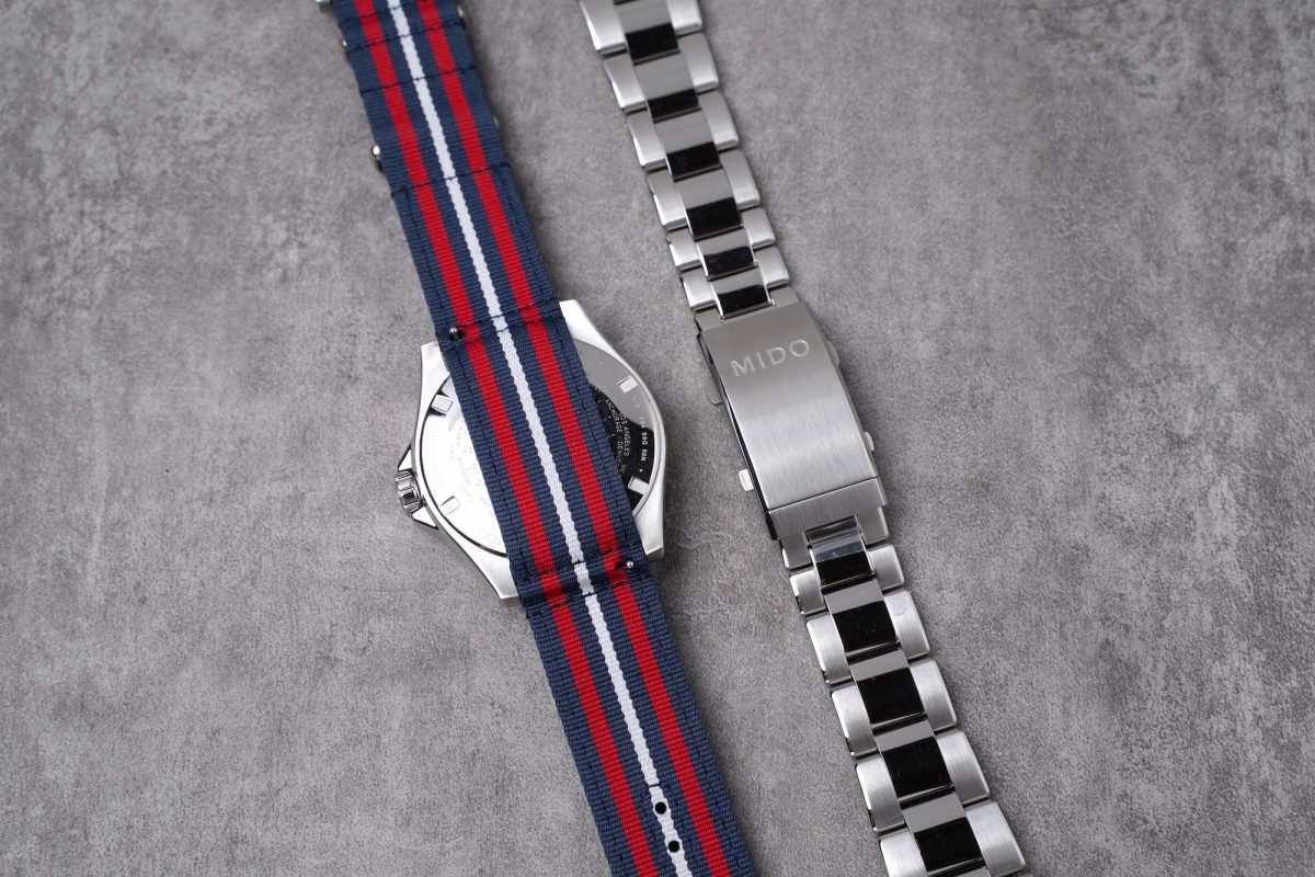 既然做了特別的配色,這次OCEAN STAR GMT特別版,除了原本的鏈帶,還覆上一條紅藍白配色的NATO織物風格皮質錶帶。為了方便替換錶帶,在鏈帶以及NATO帶上都有快拆的設計,實際上手操作替換上相當簡便。