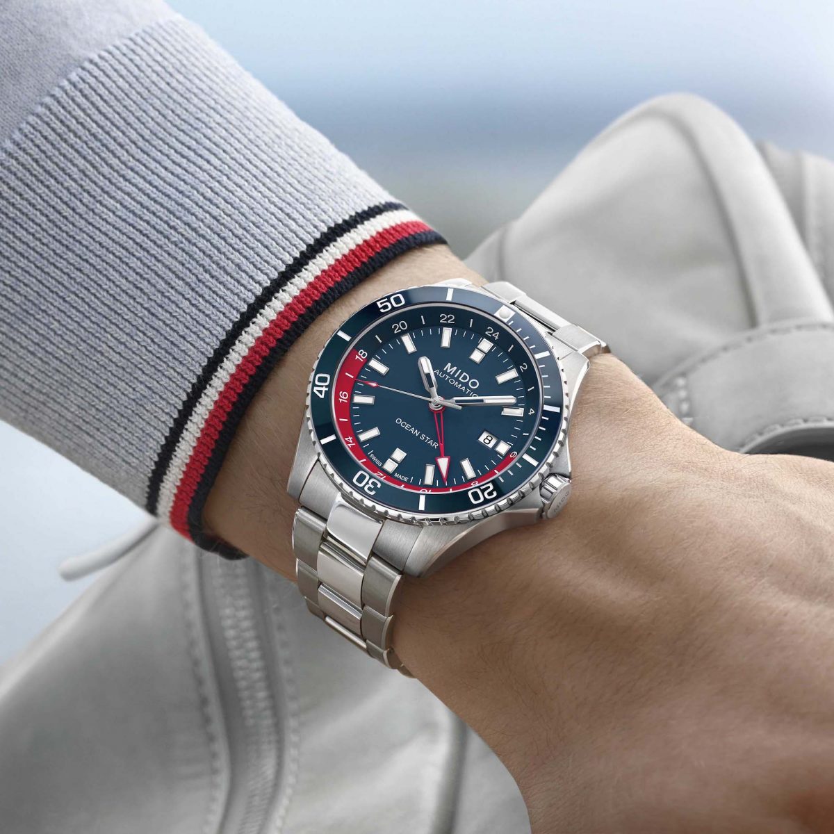Ocean Star GMT海洋之星雙時區腕錶特別版/錶徑:38mm/機芯:美度Caliber 80自動上鍊機芯(以ETA C07.661機芯為基礎)/動力儲存:80小時/防水深度:200m/建議售價: NTD 42,500