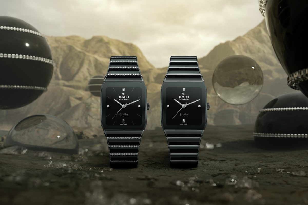 兩款 Rado 瑞士雷達表「Jubilé」鑲鑽腕錶均配備黑色高科技陶瓷拋光錶圈和錶鏈、黑色陶瓷錶冠,以及黑色漆面錶盤,鑽石為這兩款腕錶增添了獨特的設計魅力。