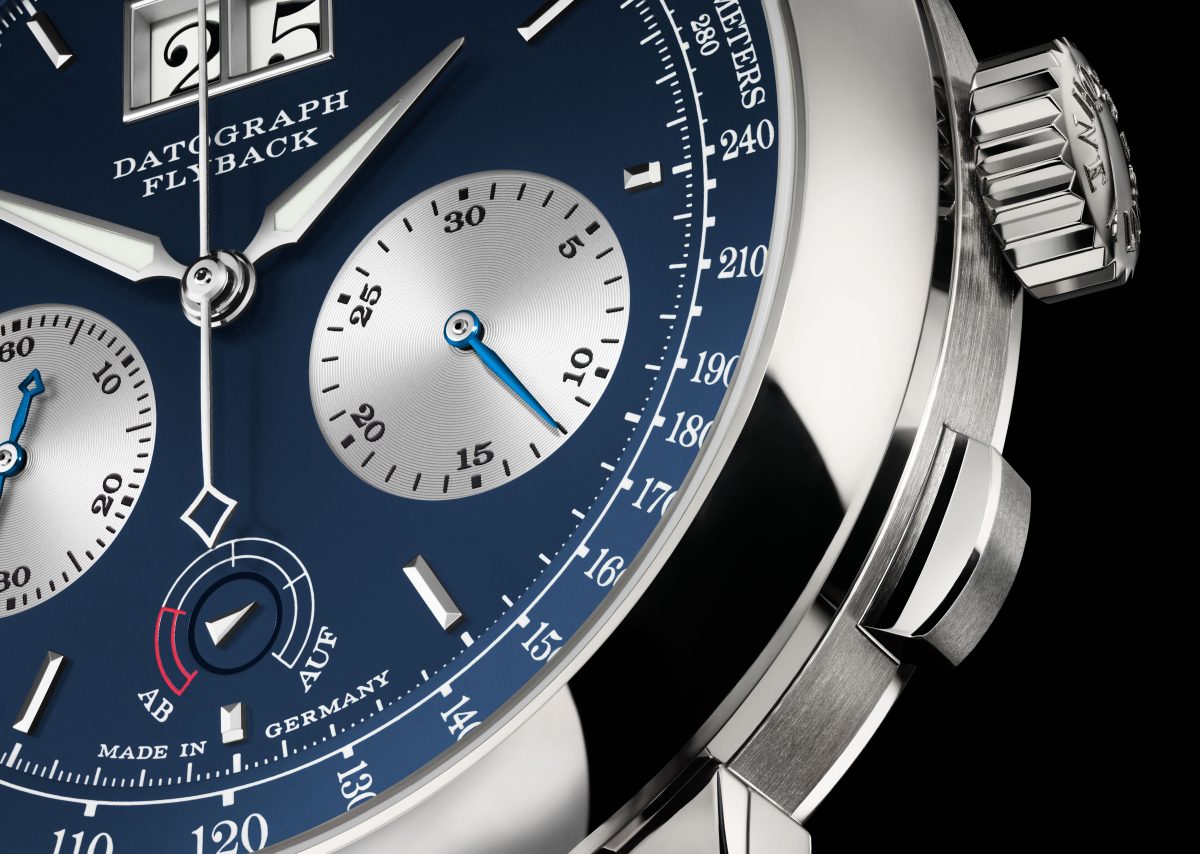 DATOGRAPH UP/DOWN 型號405.028/錶徑:41mm/材質:18K白金/機芯:朗格自製 L951.6 型手動上鍊機芯/動力儲存:60小時/限量125只